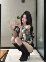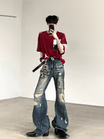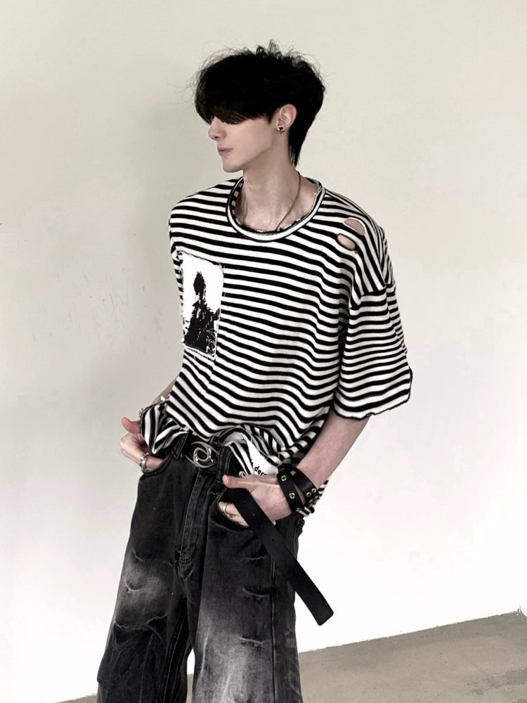 تي شيرت مزخرف بألوان متموجة مع رقعة ممزقة