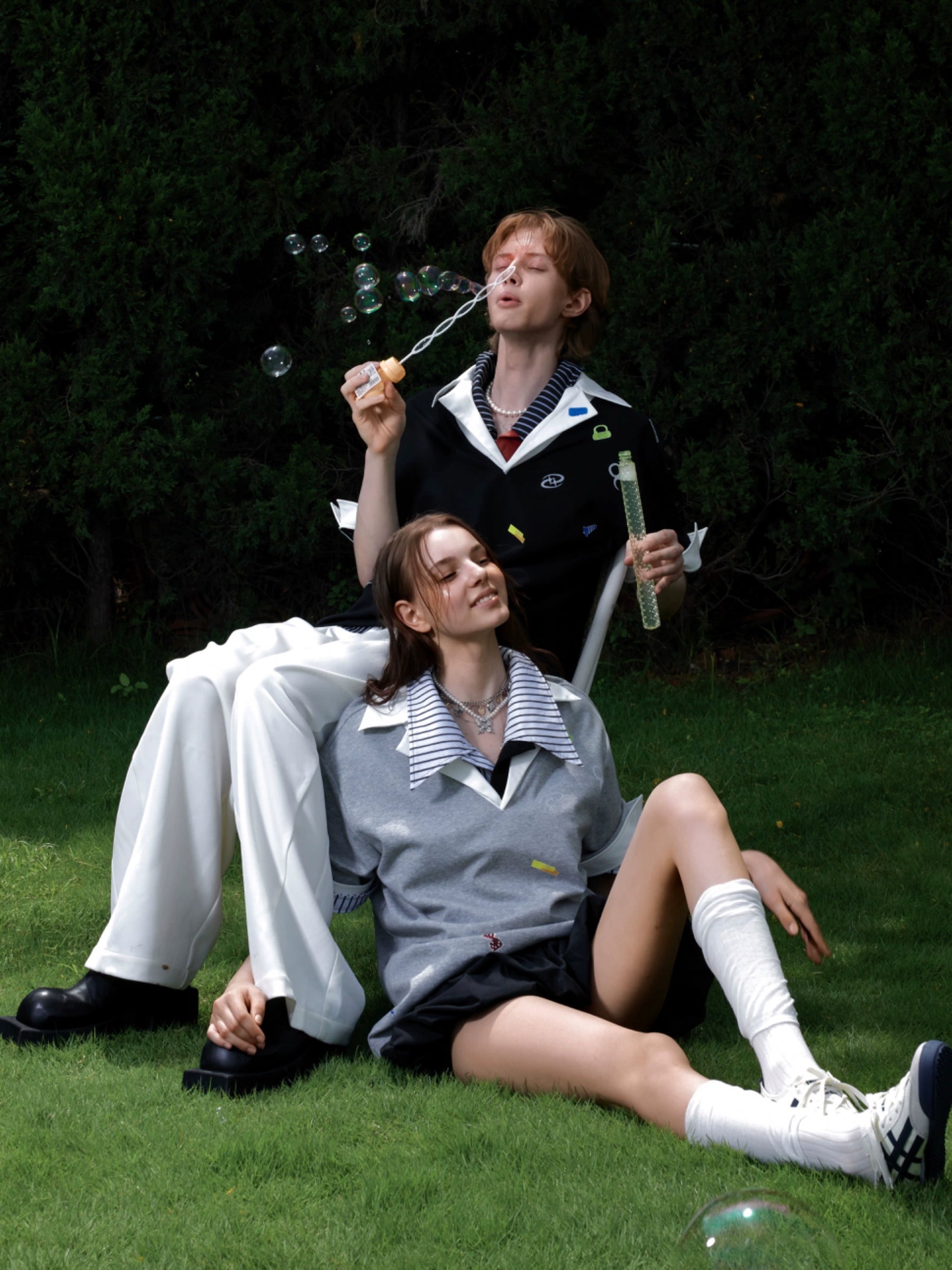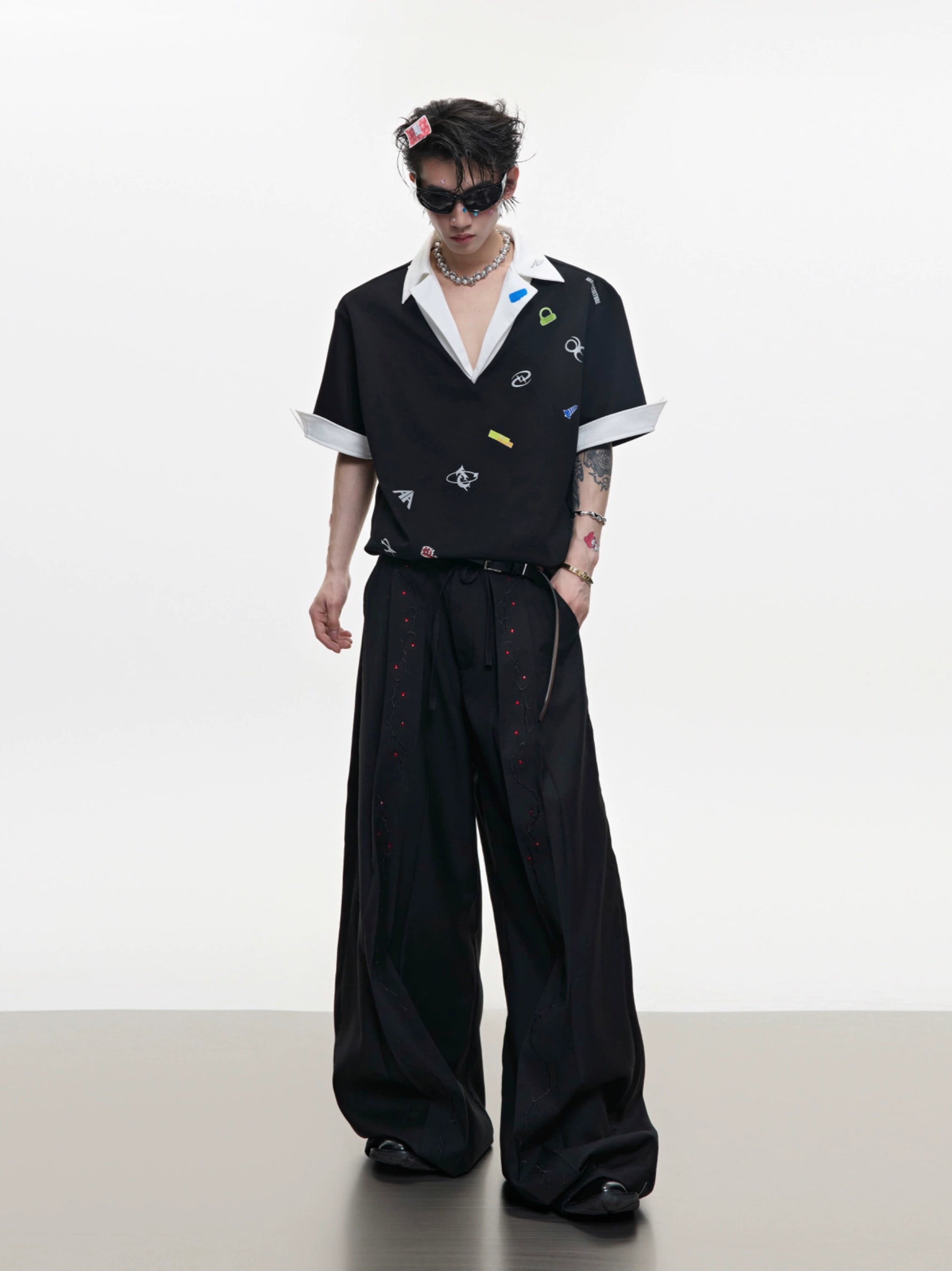 قميص بولو بياقة على شكل حرف V وسروال واسع الساقين