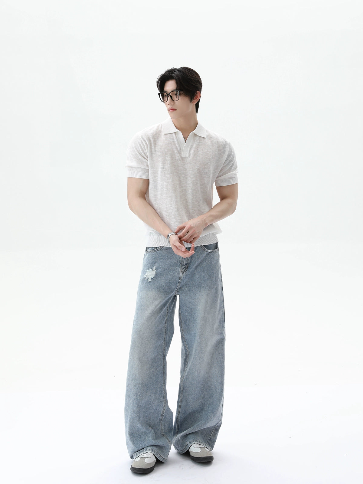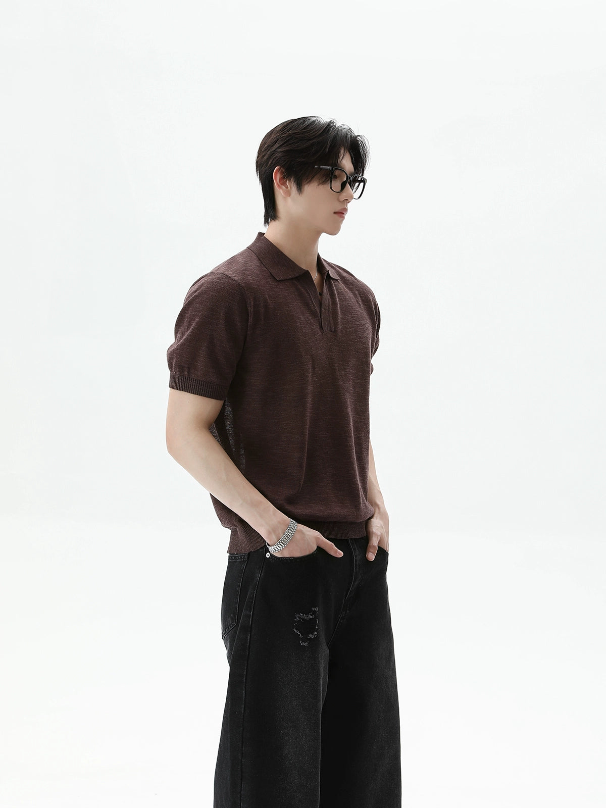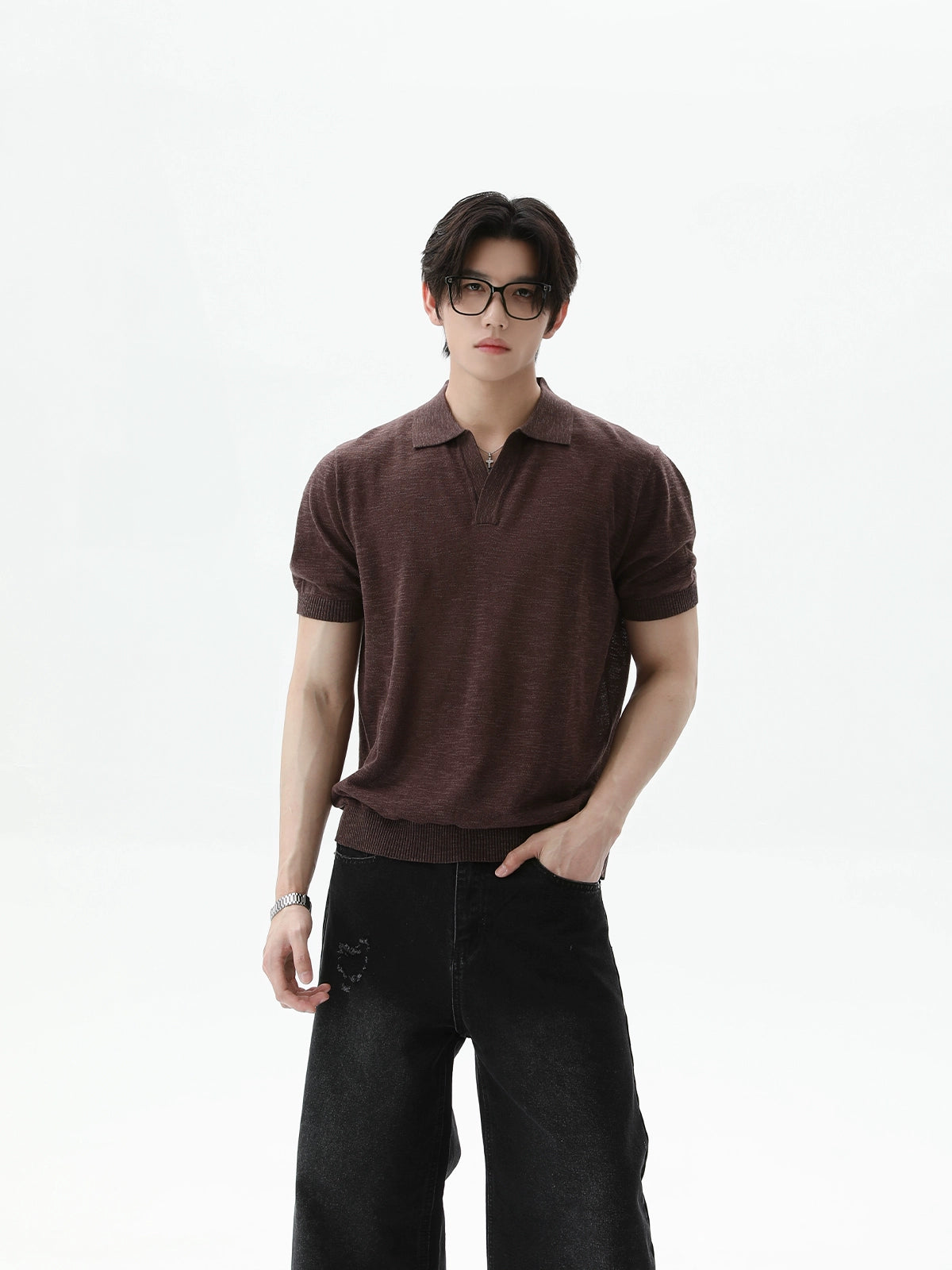 بولو بولوفر محبوك بأكمام قصيرة على شكل حرف V