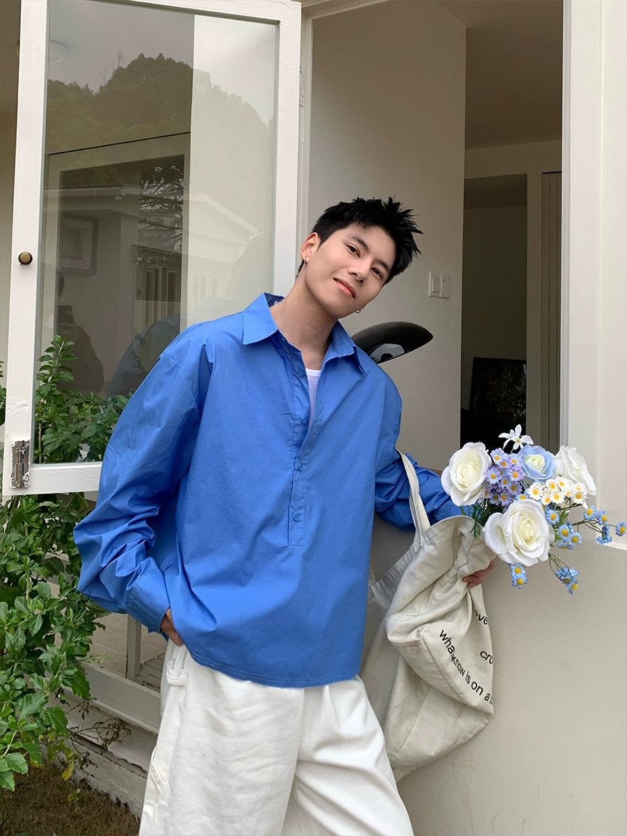 قميص سترة بأكمام طويلة فضفاضة وعادية