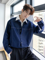 - القماش الرئيسي: قماش جينز مقلد مغسول, صلب ومشكل. الطبقة الداخلية ملحومة بقماش TR, غنية بالطبقات.