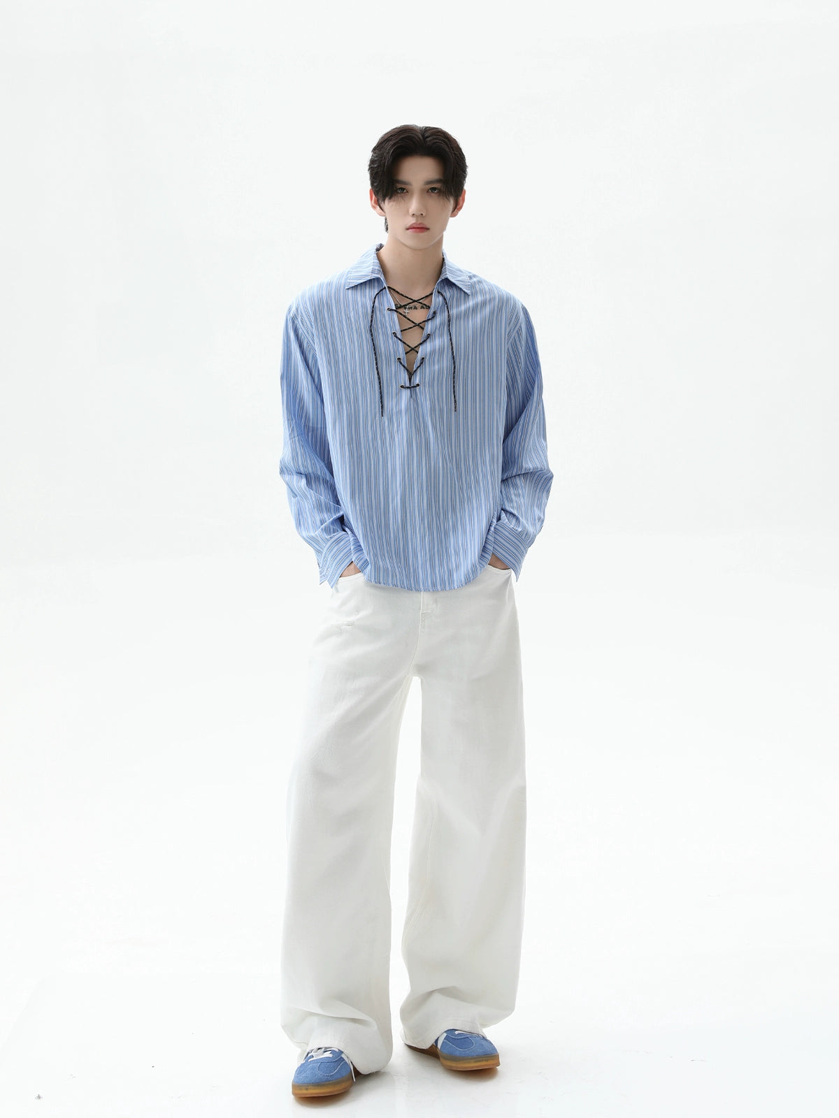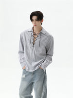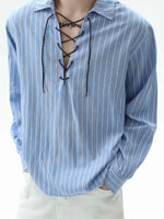 قميص بولو بأكمام طويلة مخطط بحبل سحب