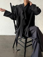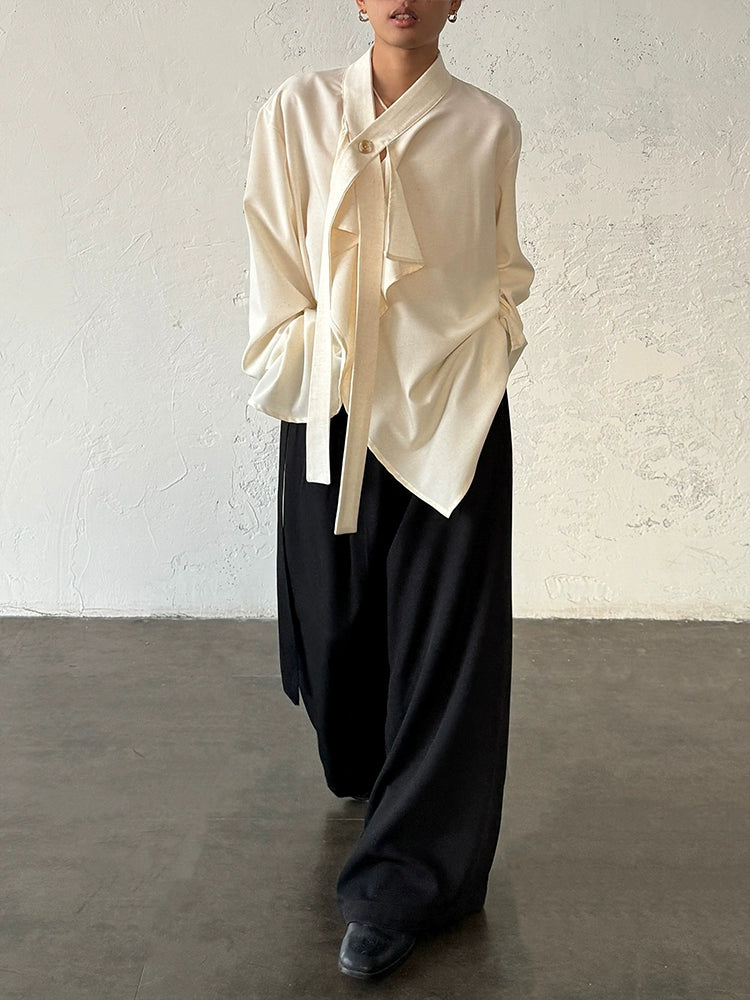 French Ribbon Stand-Up Collar Shirt