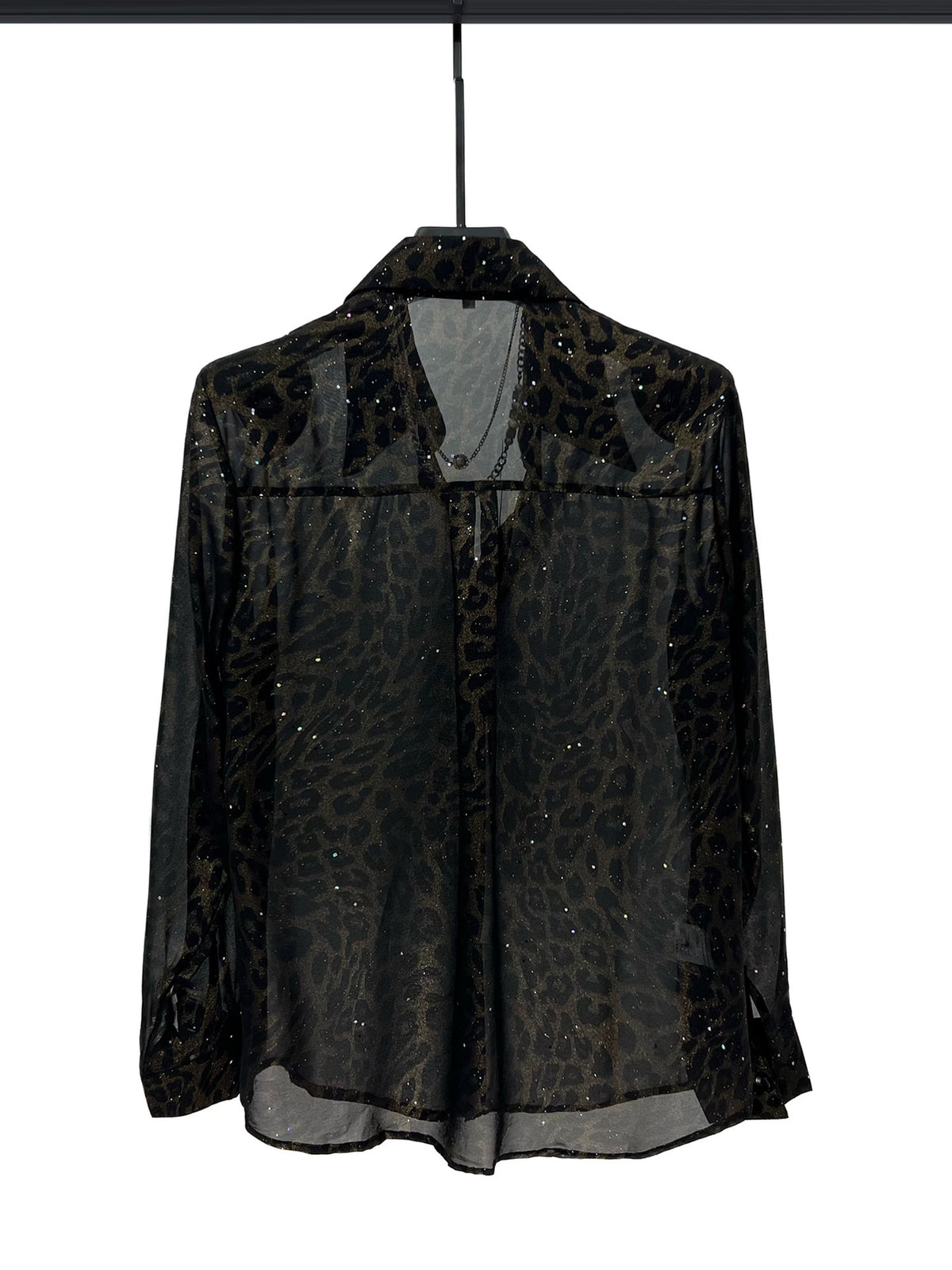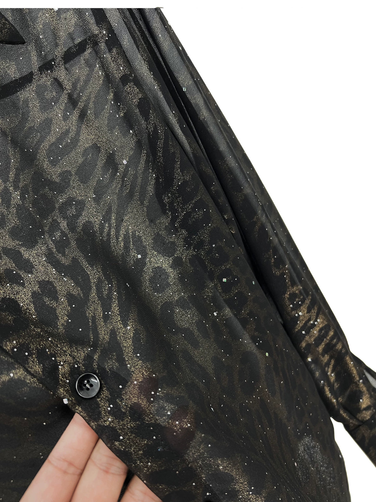 - القماش: قماش خفيف شفاف بنقشة الفهد وتفاصيل من الخرز.