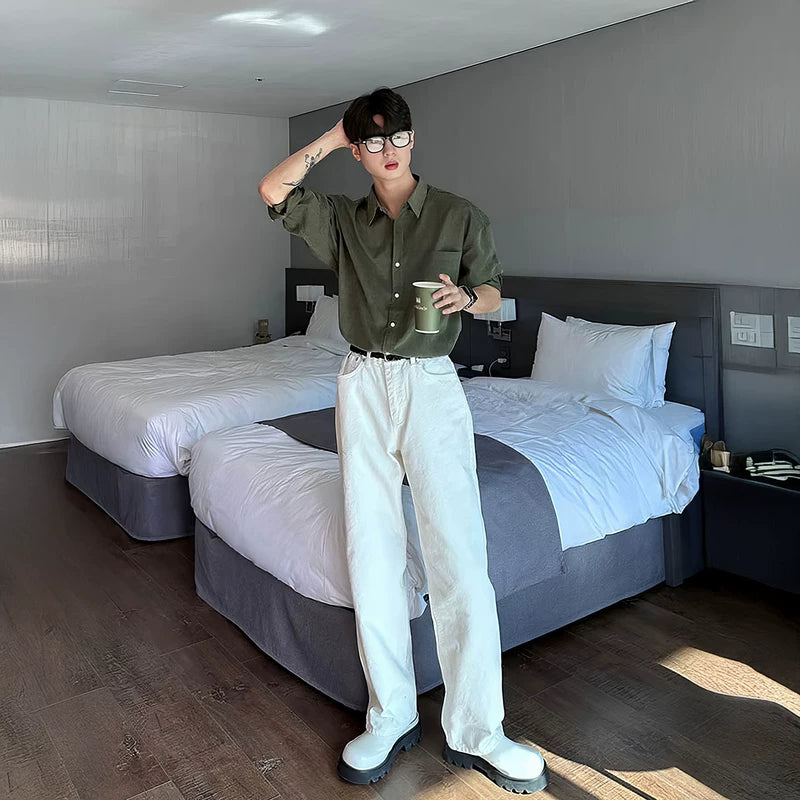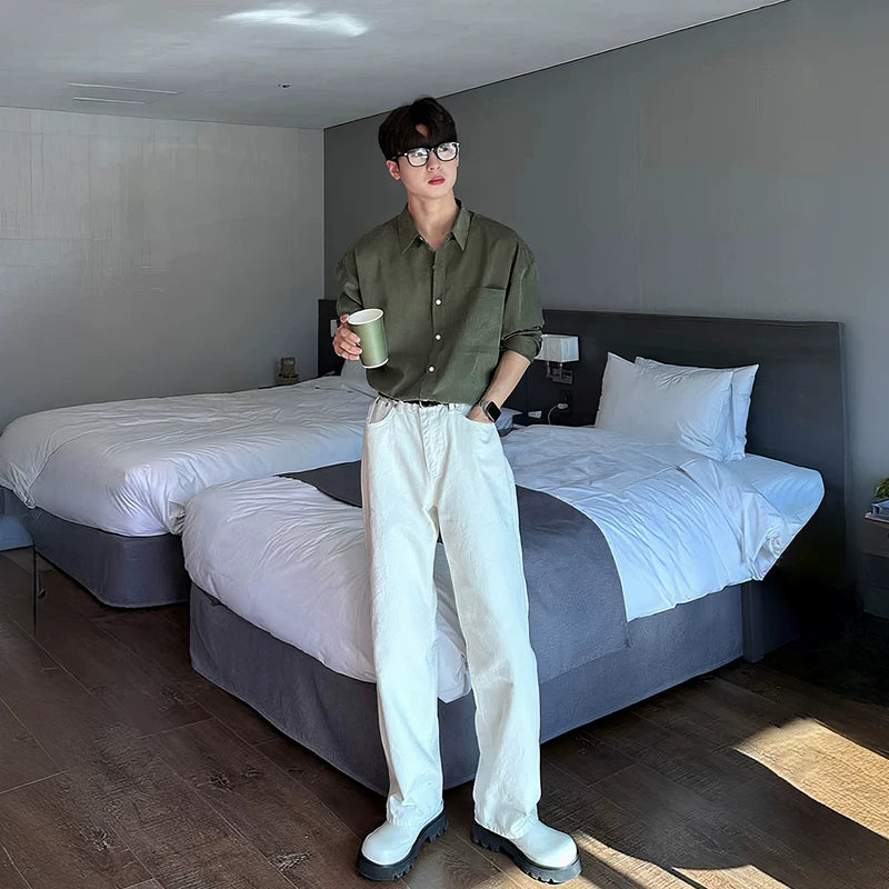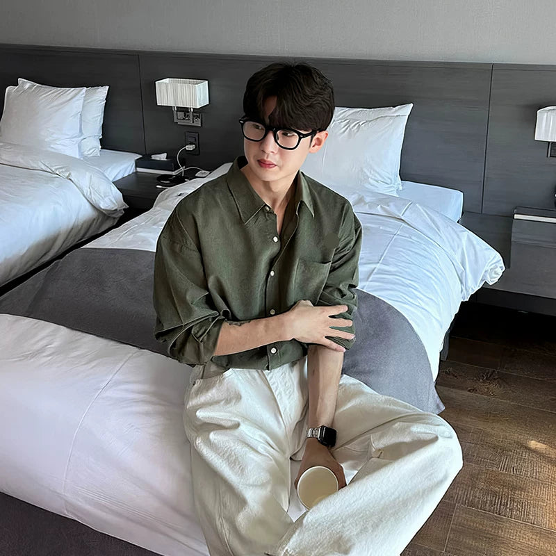 قميص كاجوال بأزرار وياقة طويلة الأكمام