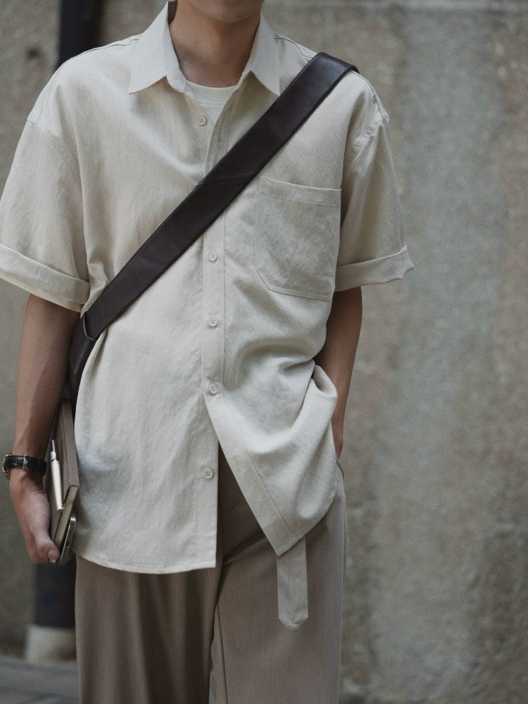 قميص قصير الأكمام فضفاض غير رسمي من ليوقيل