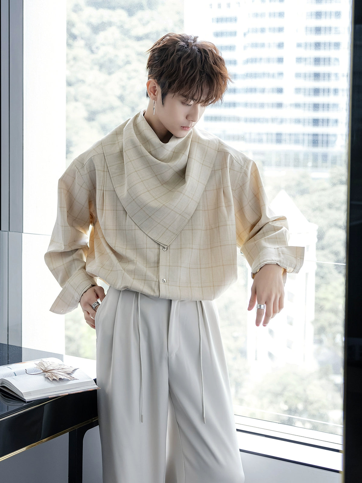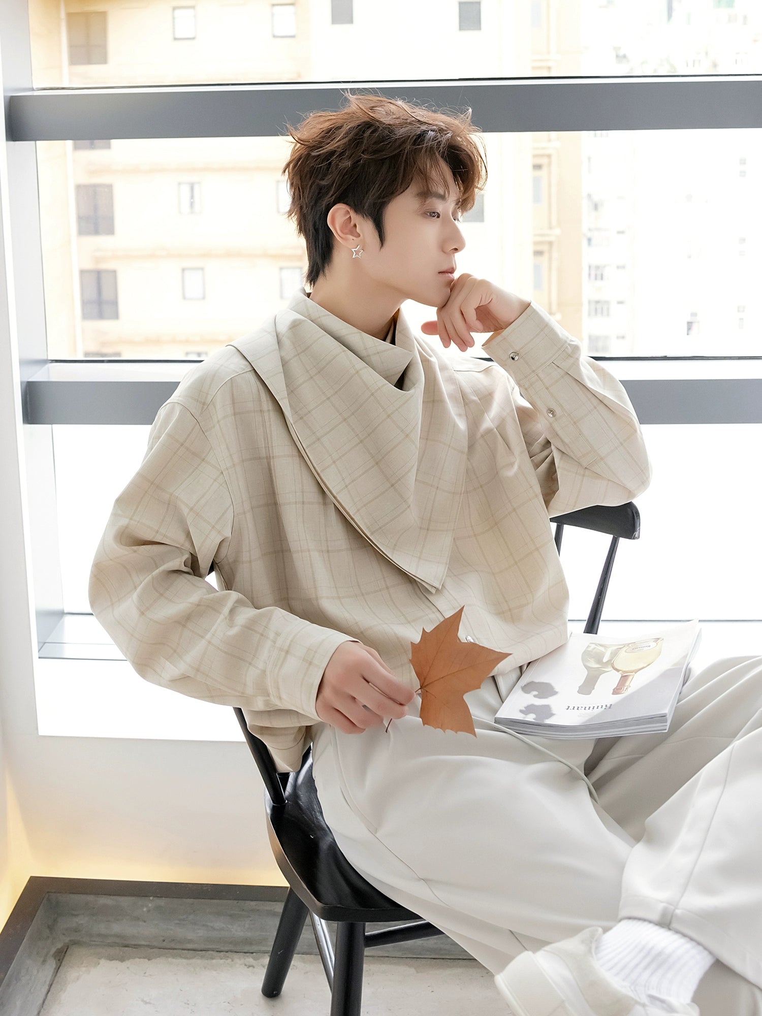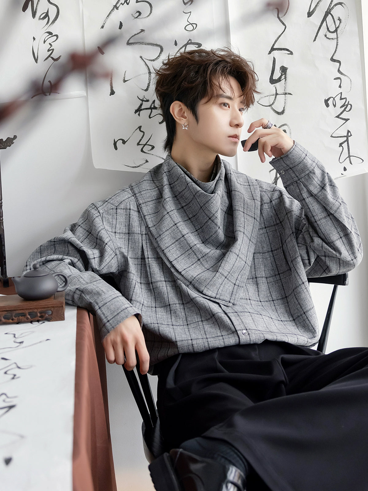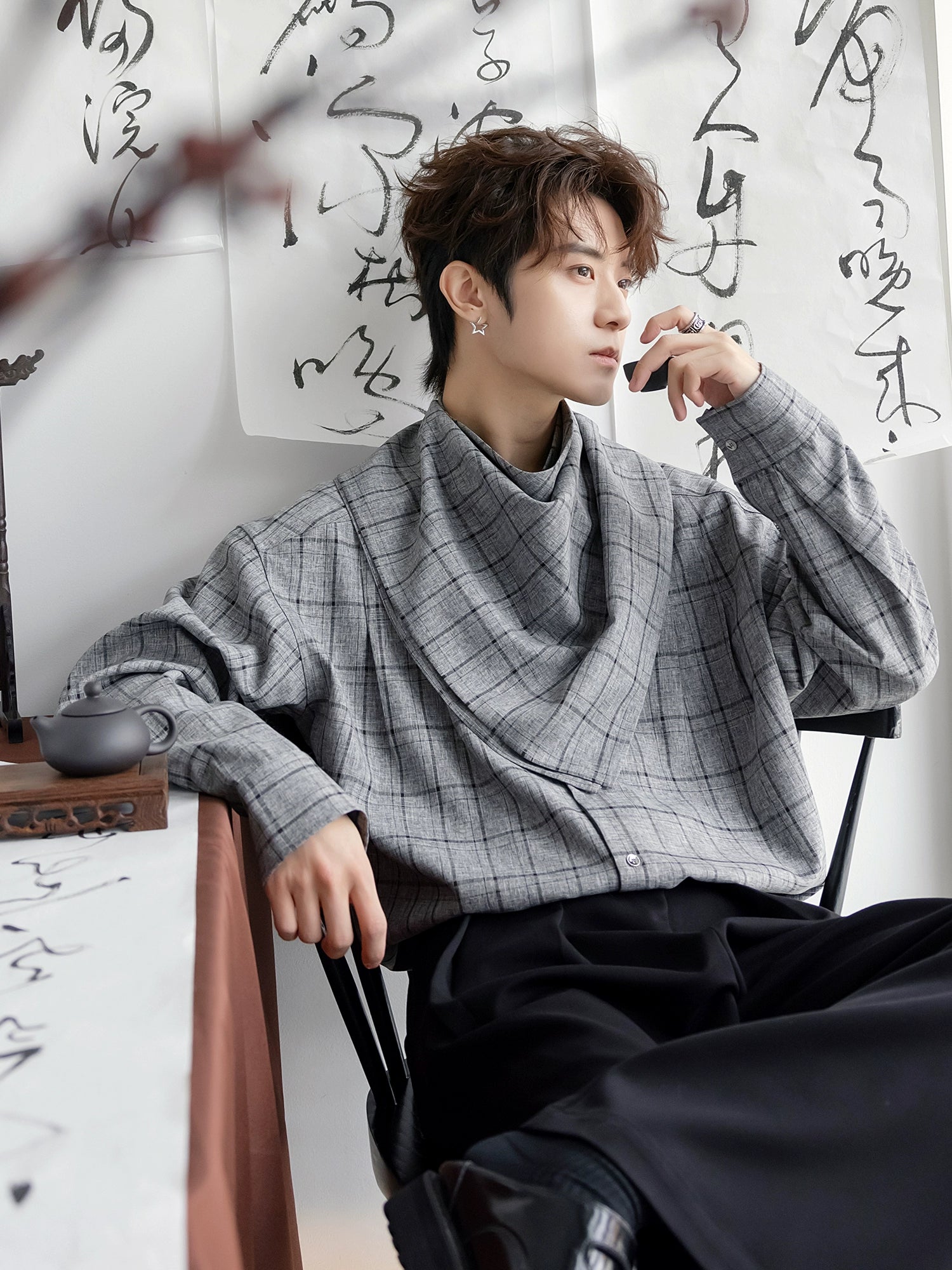 - أسلوب قميص ذو ياقة قابلة للطي الكلاسيكية مع وشاح قابل للفك لإضافة طبقات بصرية غنية وأنماط ارتداء متعددة.