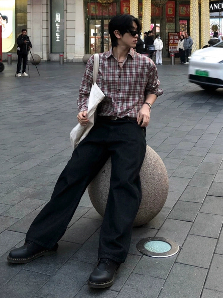 قميص كاجوال فضفاض بأكمام طويلة من قماش الكاروهات