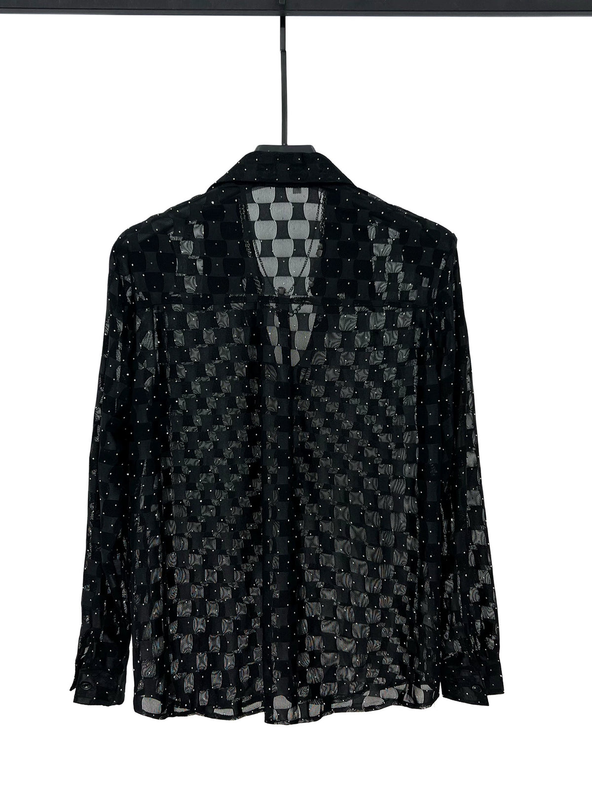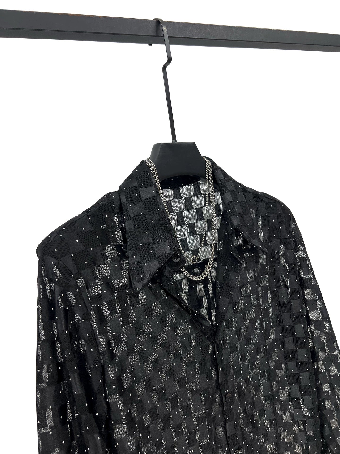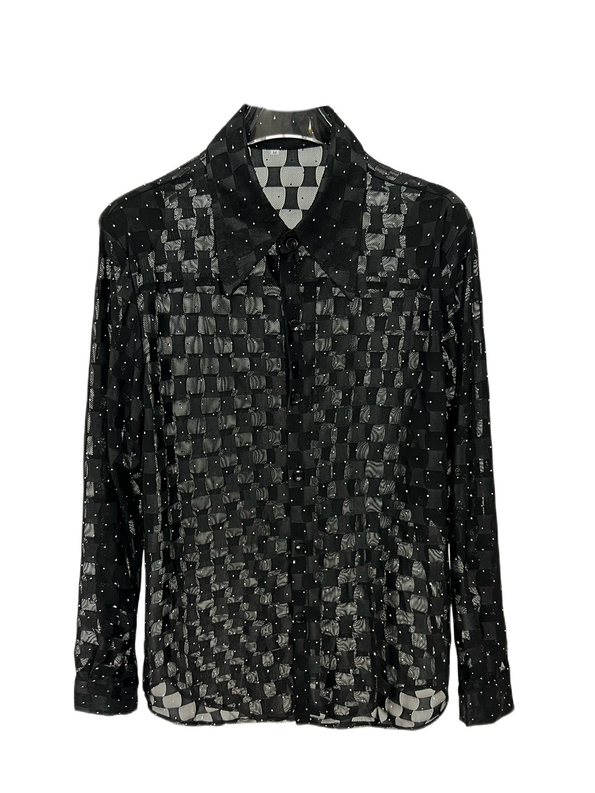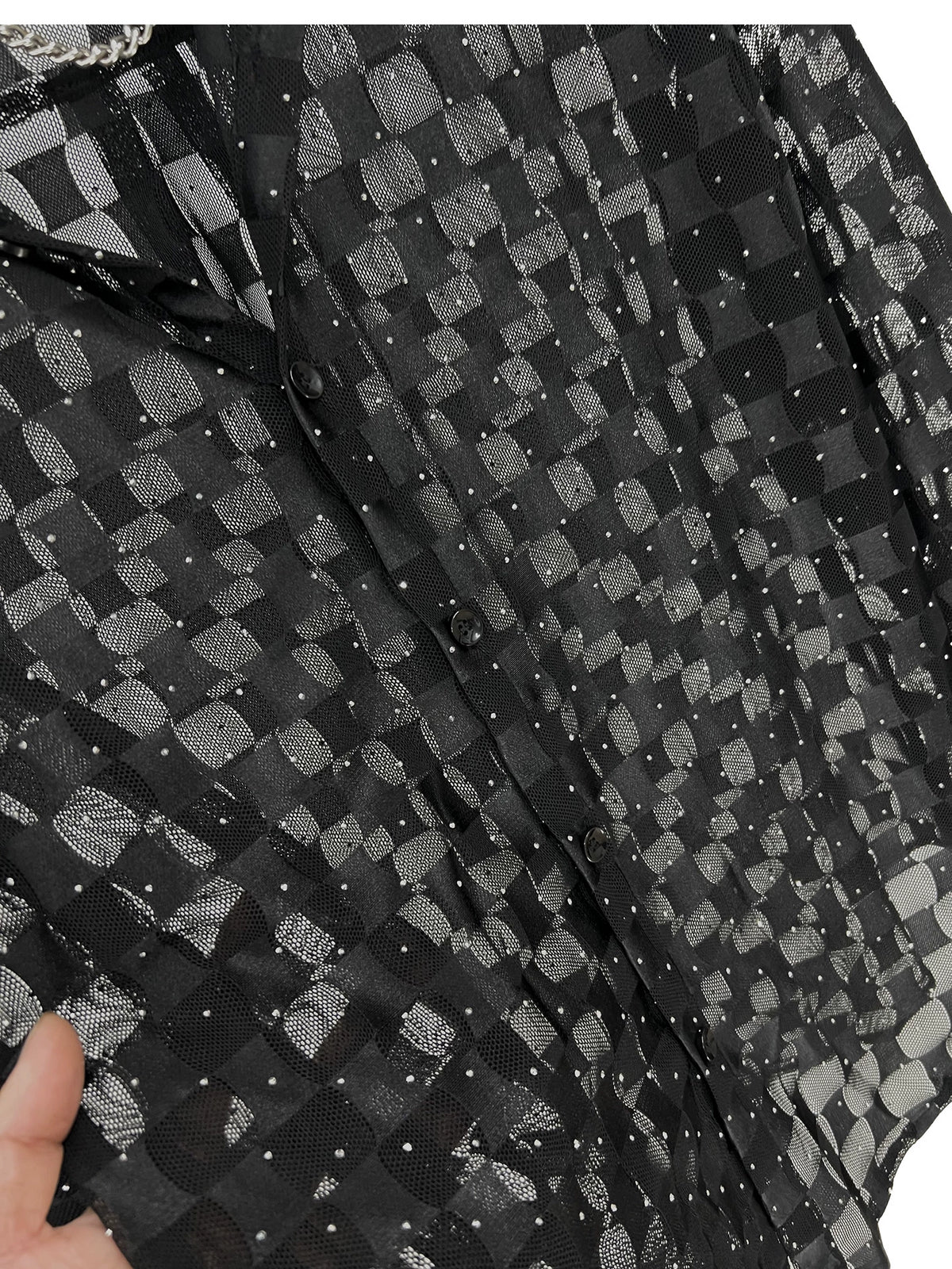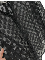 - القماش/المادة: قماش شبكي شفاف بنمط مربعات ونقاط مميزة