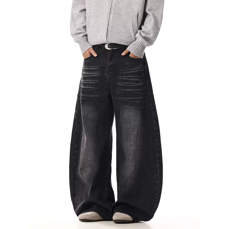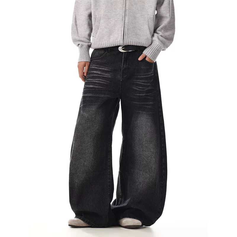 جينز واسع الساق بتصميم ريترو ومغسول بتأثير متهالك
