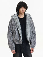 • جاكيت مبطن بياقة من الفرو الصناعي