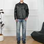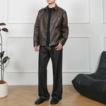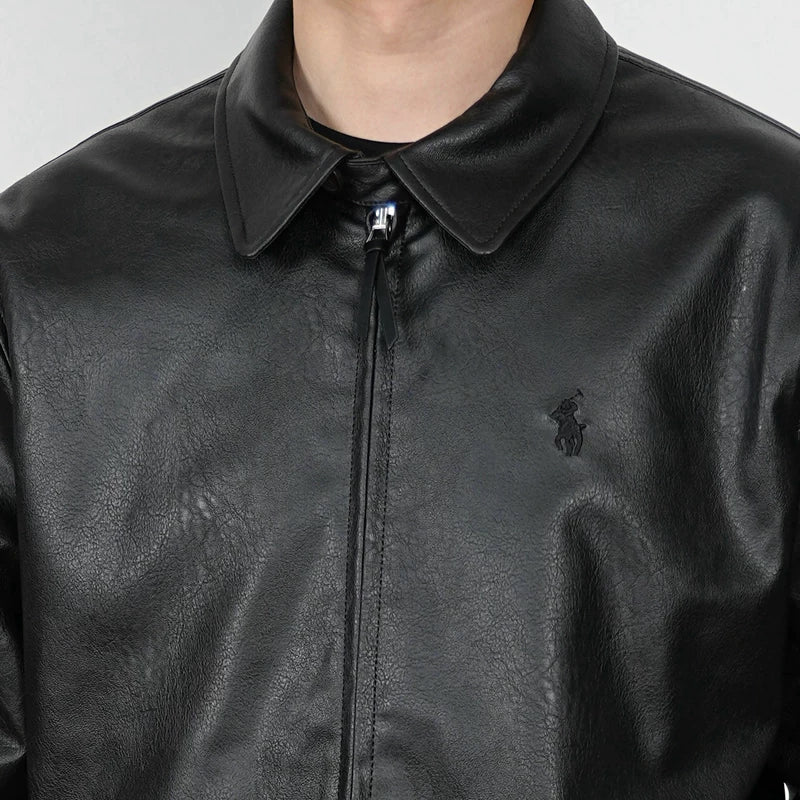 جاكيت بقلنسوة بسحاب من جلد PU مع تطريز