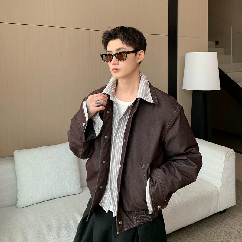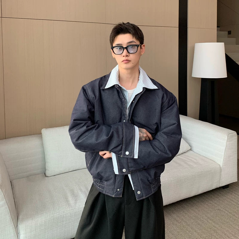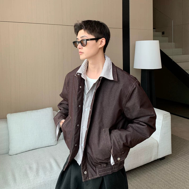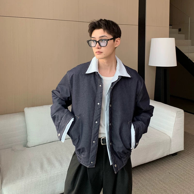 جاكيت هارينجتون من القطن مع رقعة ياقة مخططة