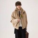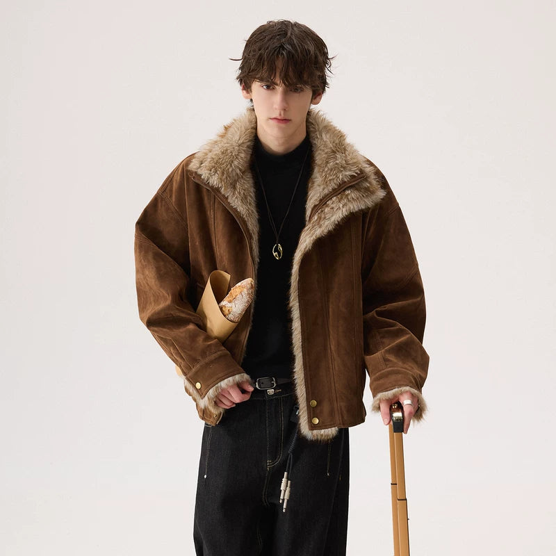 جاكيت مصنوع من جلد الغزال مع ياقة مرتفعة