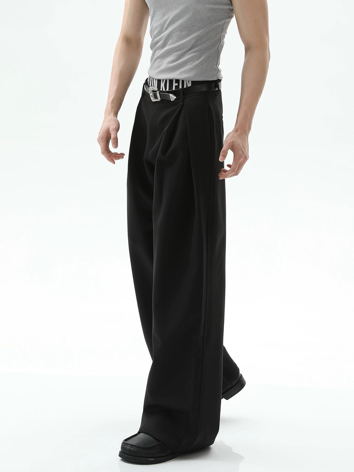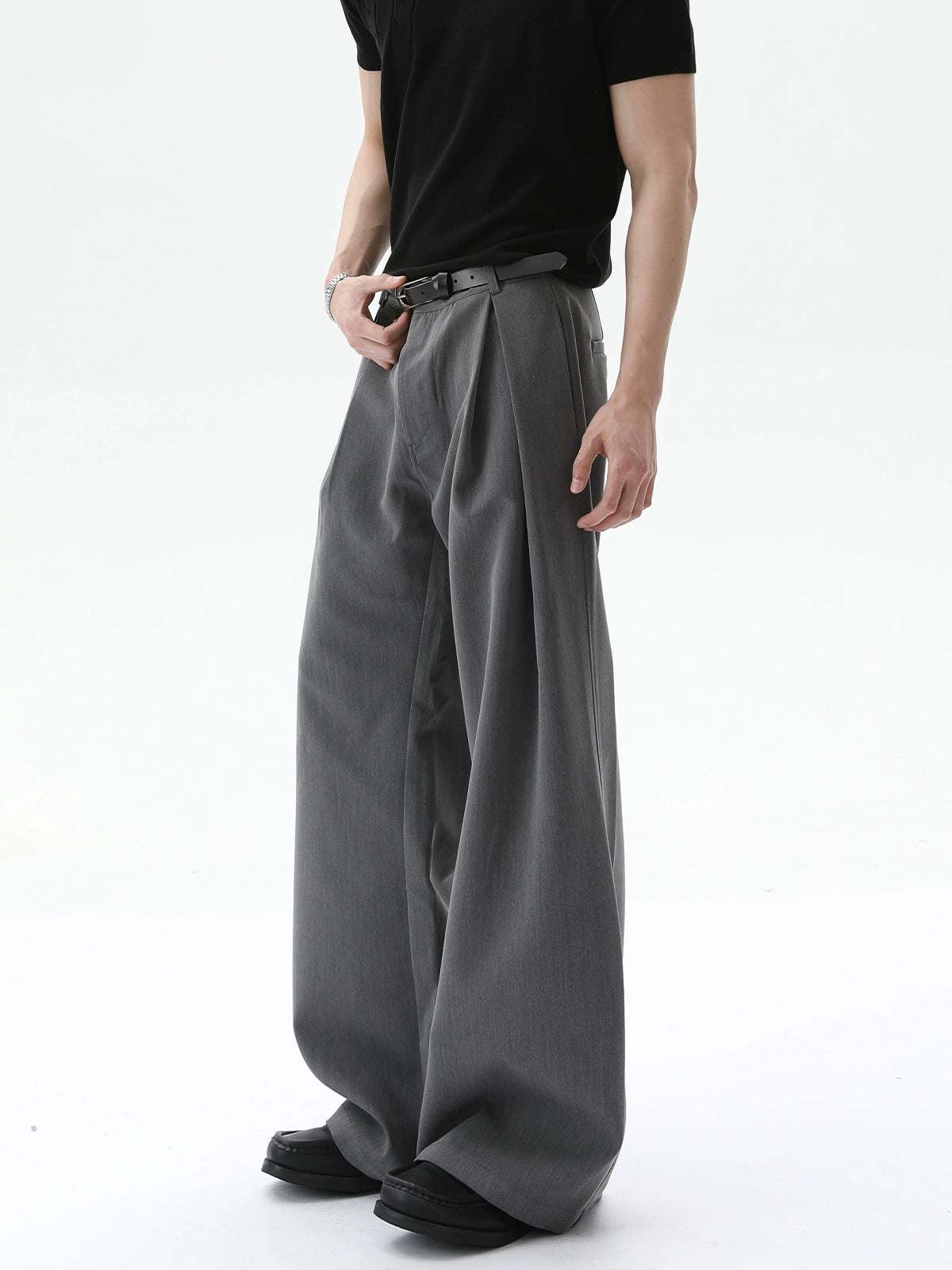 بنطلونات A-Line ذات طيات مزدوجة وساق واسعة