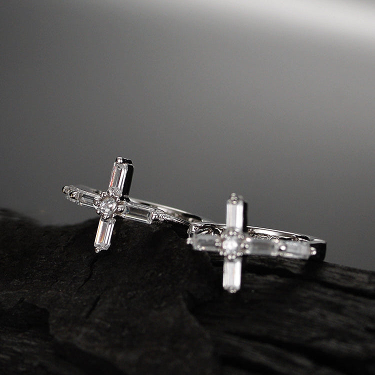 أقراط هوب على شكل صليب ماسي