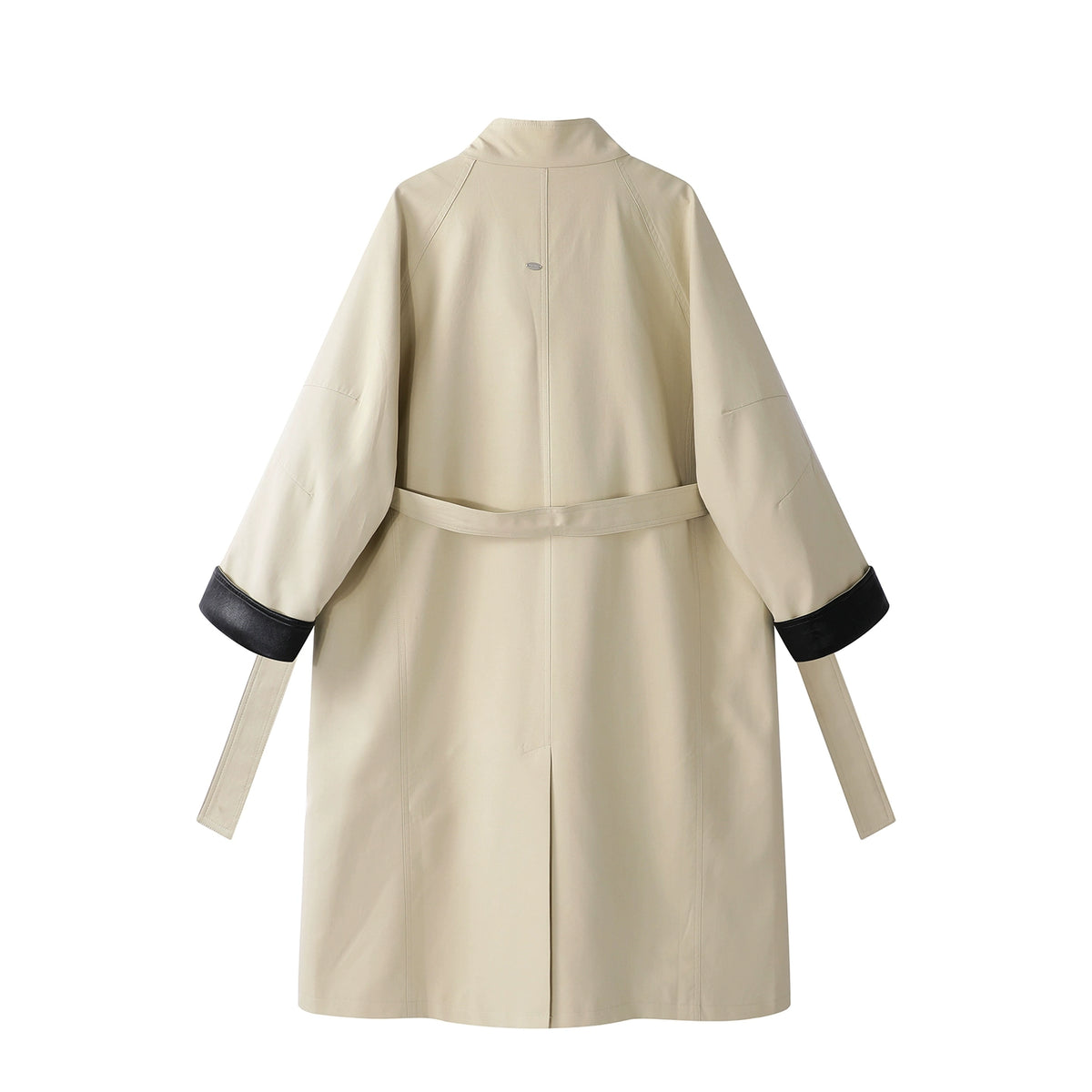 معطف ترينش طويل فضفاض بياقة مرتفعة