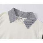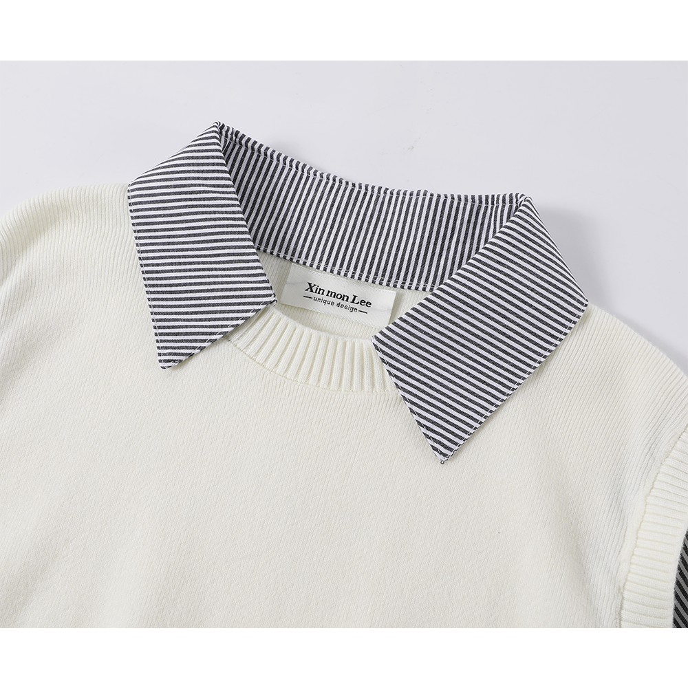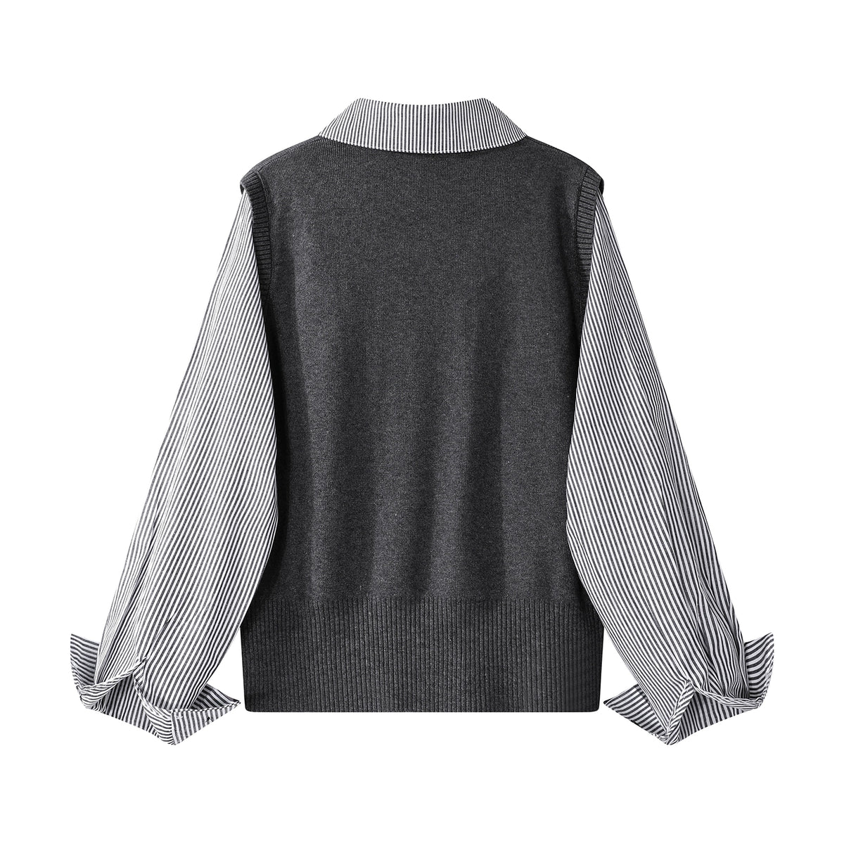 - ياقة القميص والأكمام من قماش منسوج مخطط