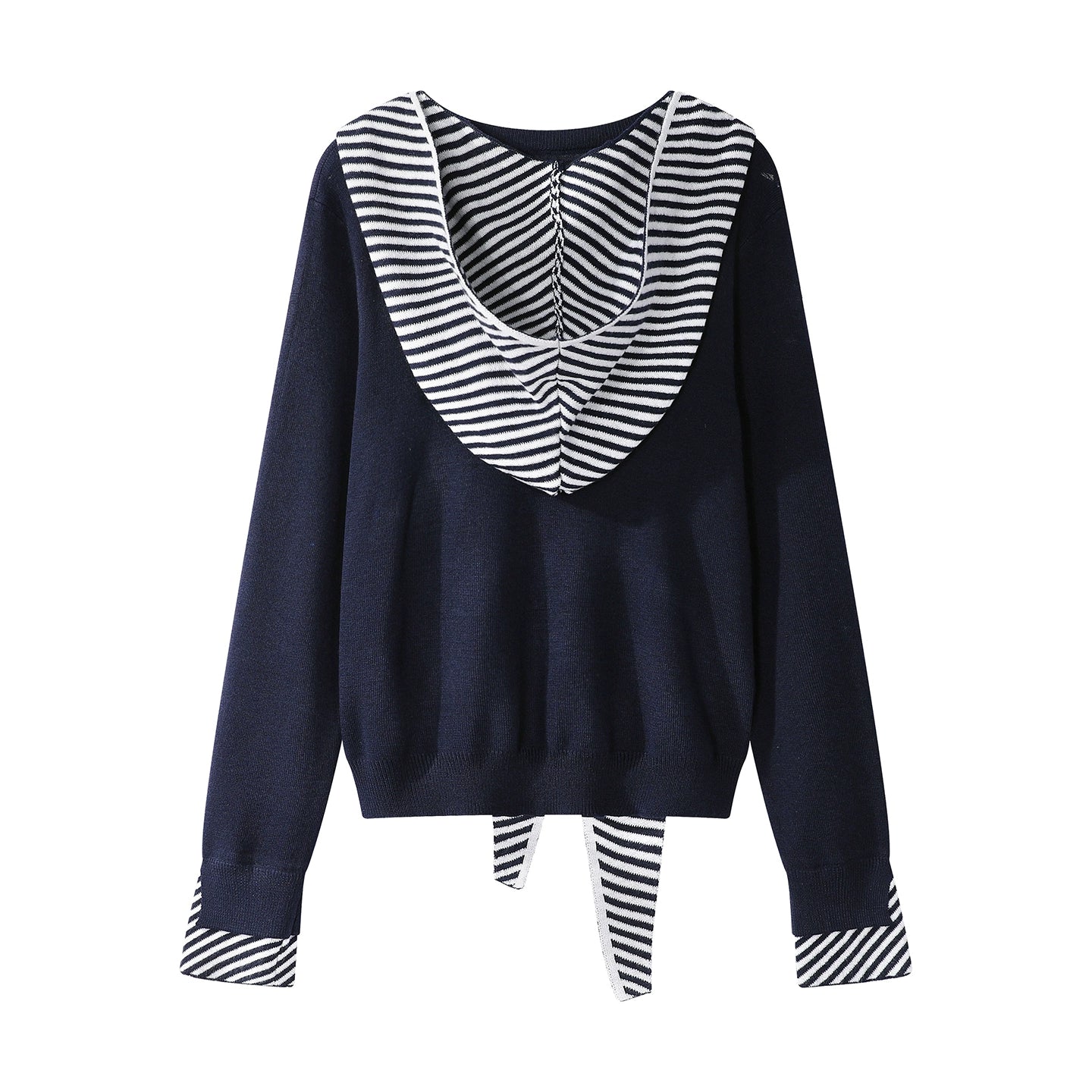 مجموعة من قطعتين من سترة محبوكة بخياطة مخططة