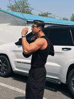 سترة رياضية ضيقة بلا أكمام ذات ياقة دائرية