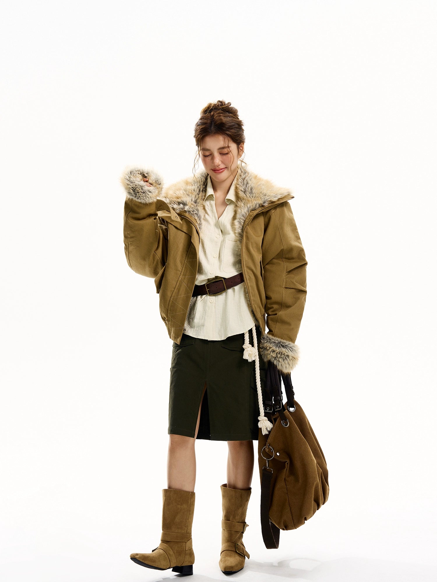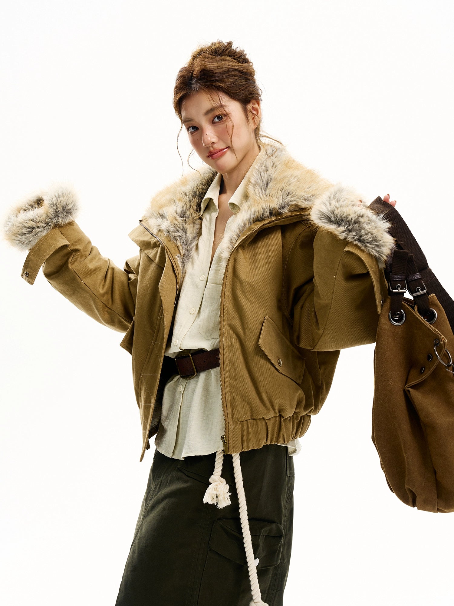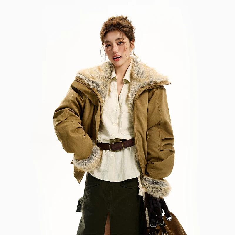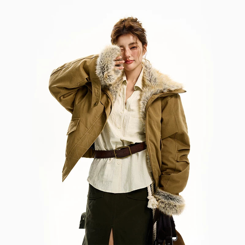 جاكيت قطن عتيق مع ياقة من الفرو كبيرة الحجم