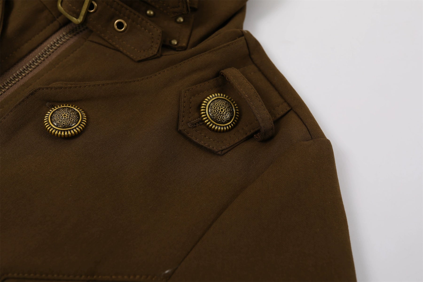- أزرار معدنية وزينة بسحاب