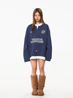 سويت شيرت بأكمام طويلة على شكل V مع رسومات جرافيتي