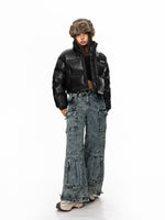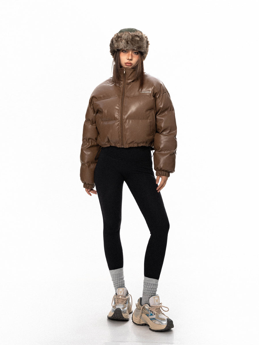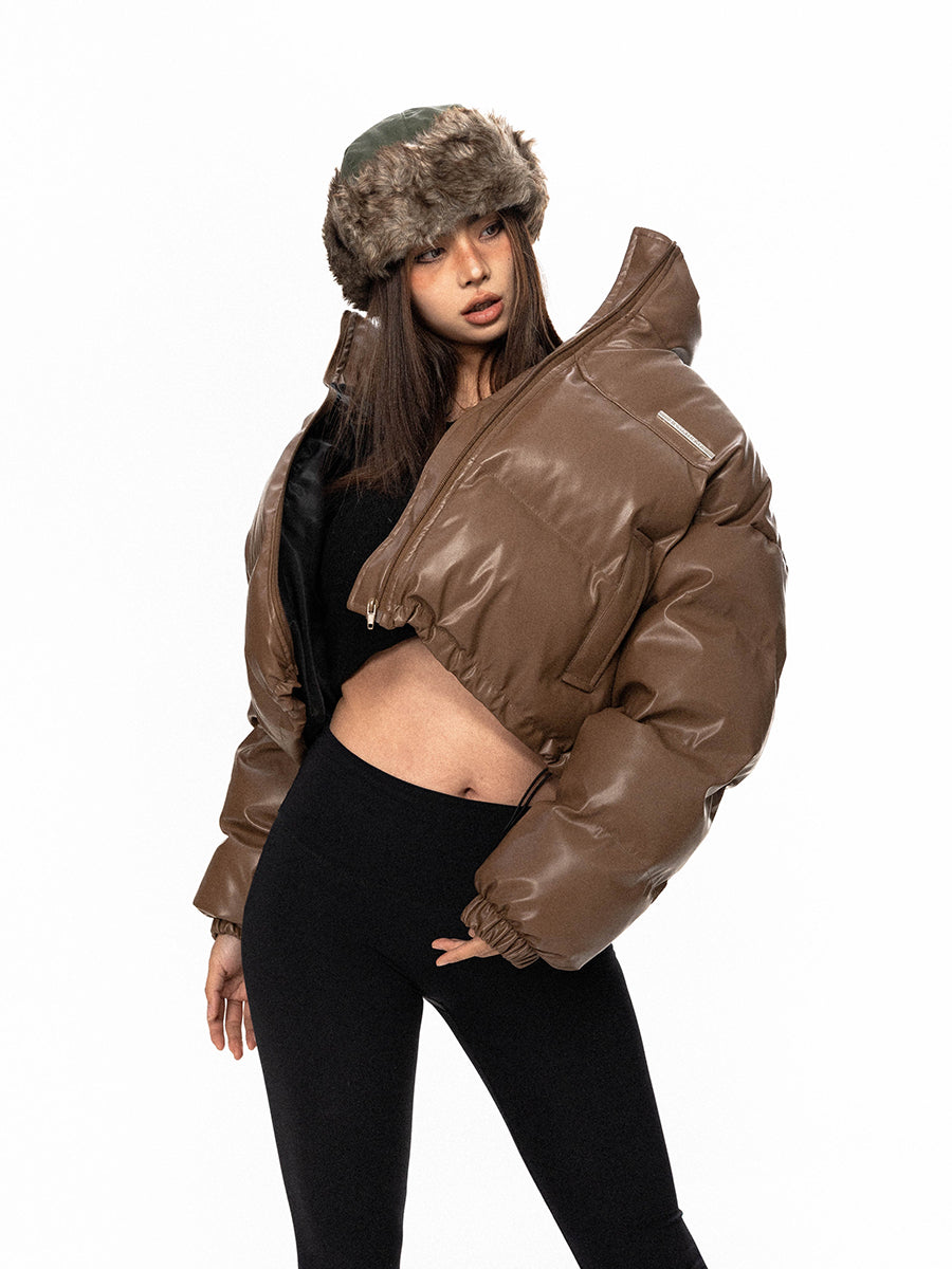 معطف شتوي بياقة Stand من جلد PU