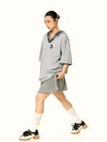 قمة قصيرة الأكمام بغطاء رأس بنمط مربعات ريترو