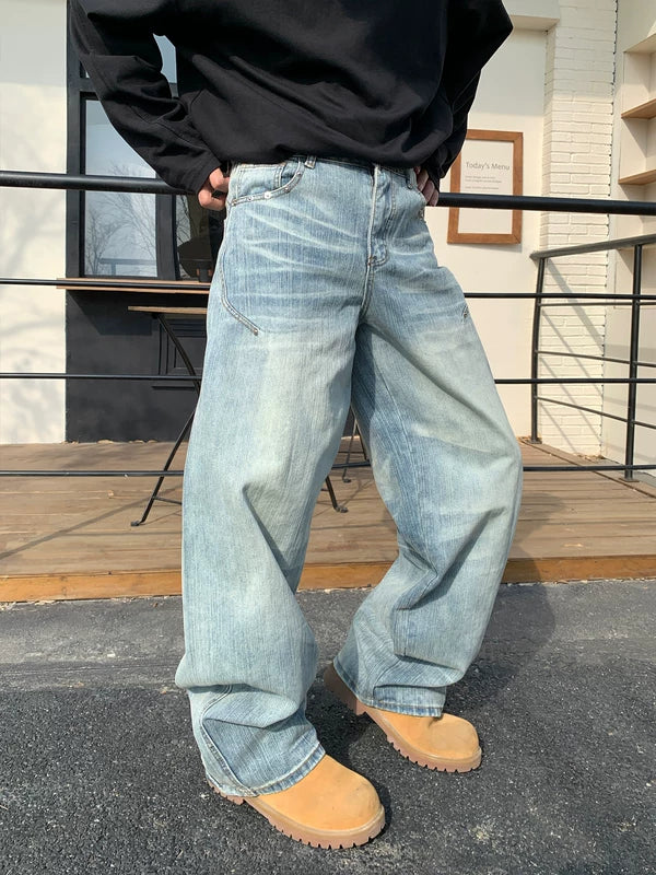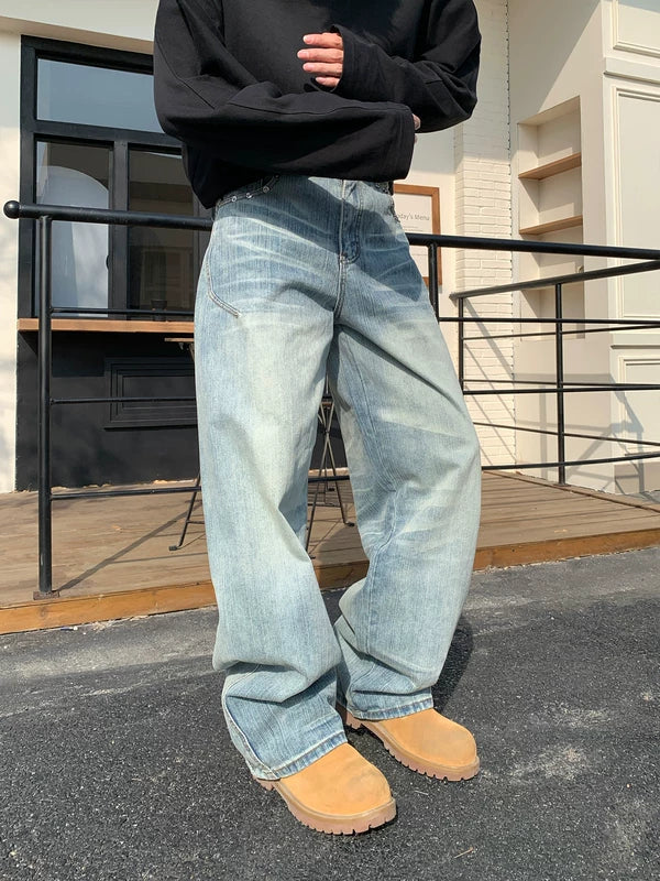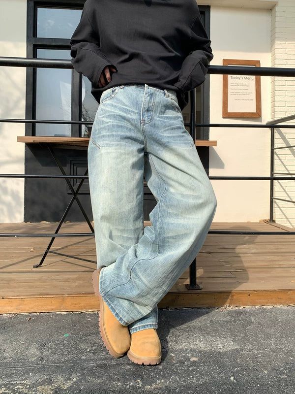 بنطلون جينز واسع الساق بتصميم فضفاض ومغسول