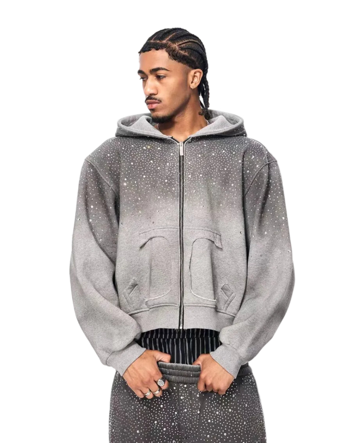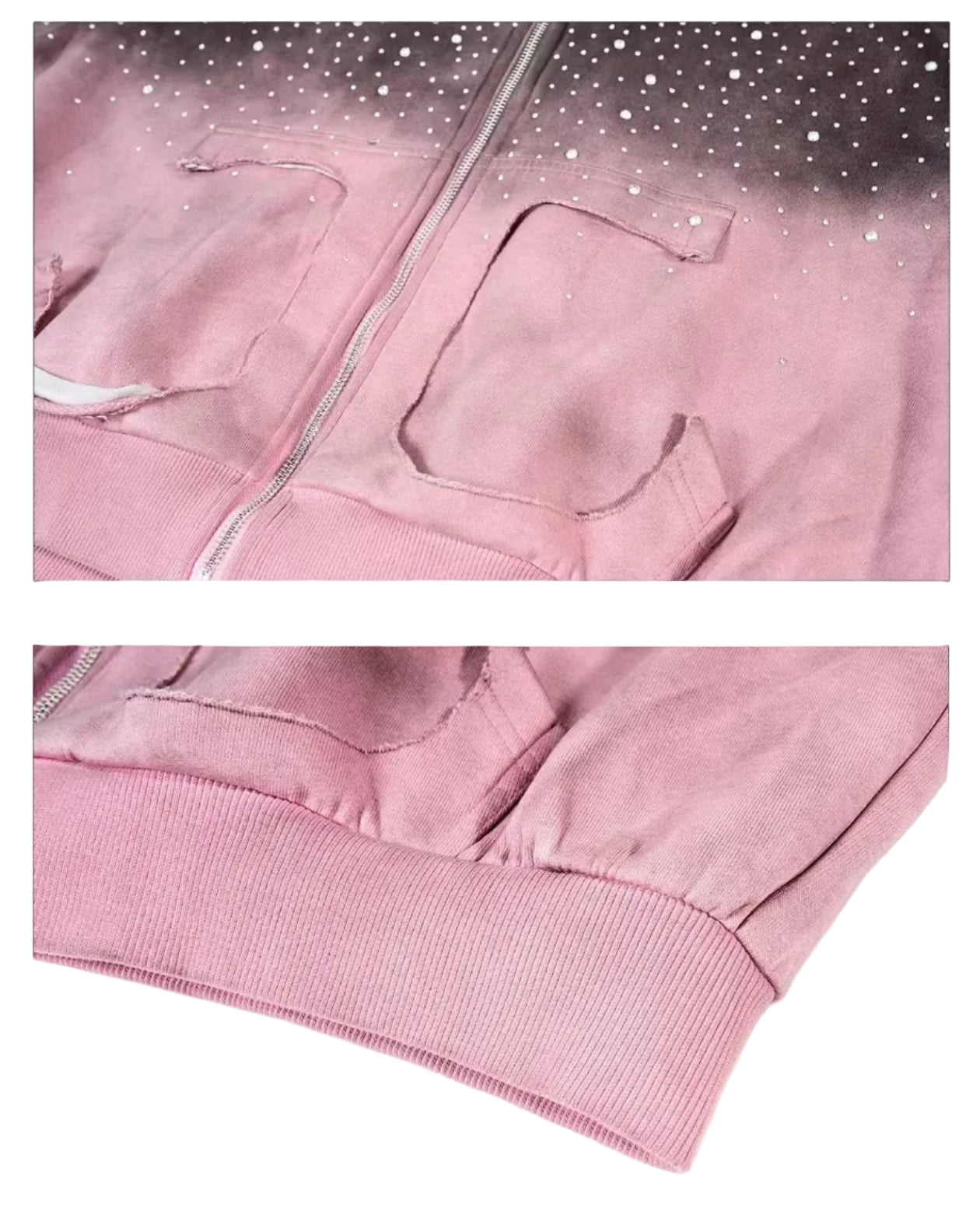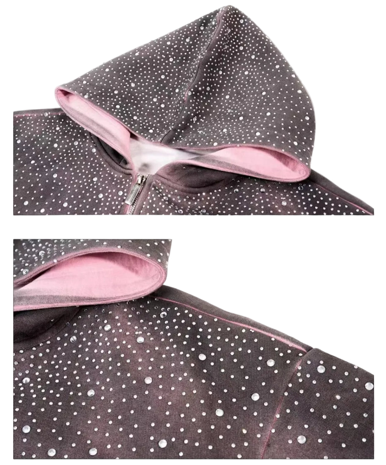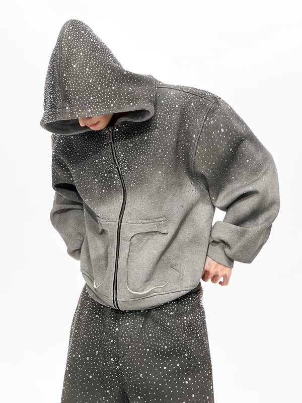 سويت شيرت بقلنسوة بسحاب مزين بالأحجار