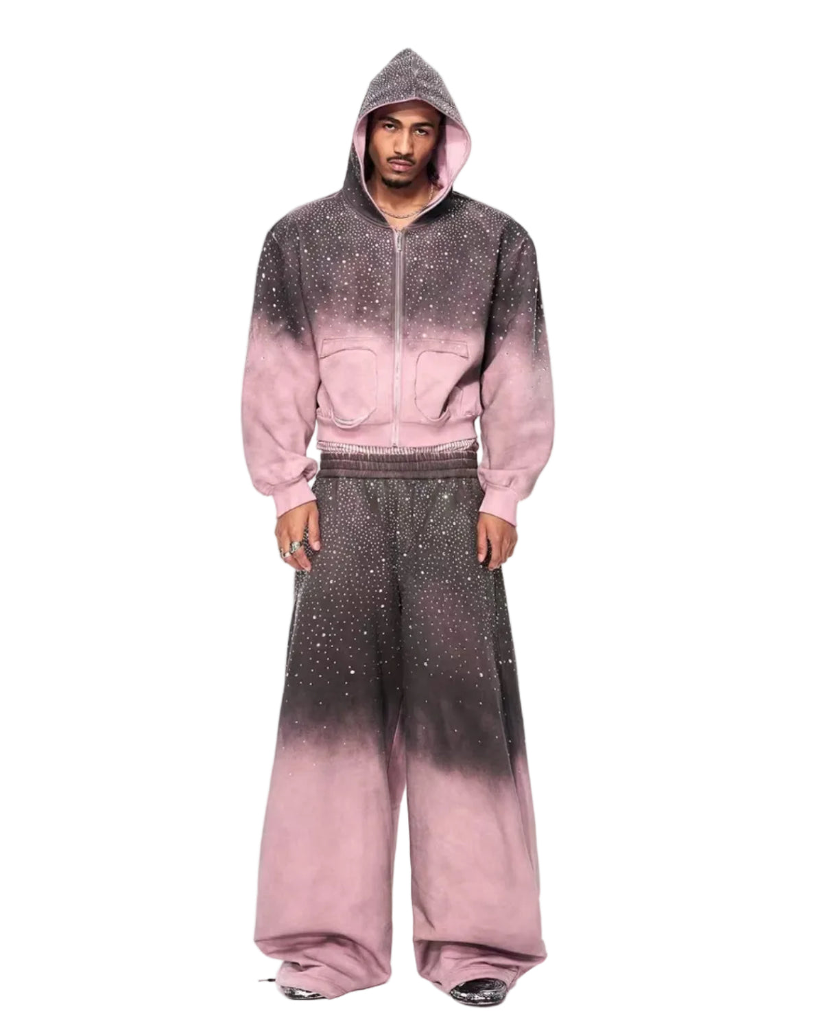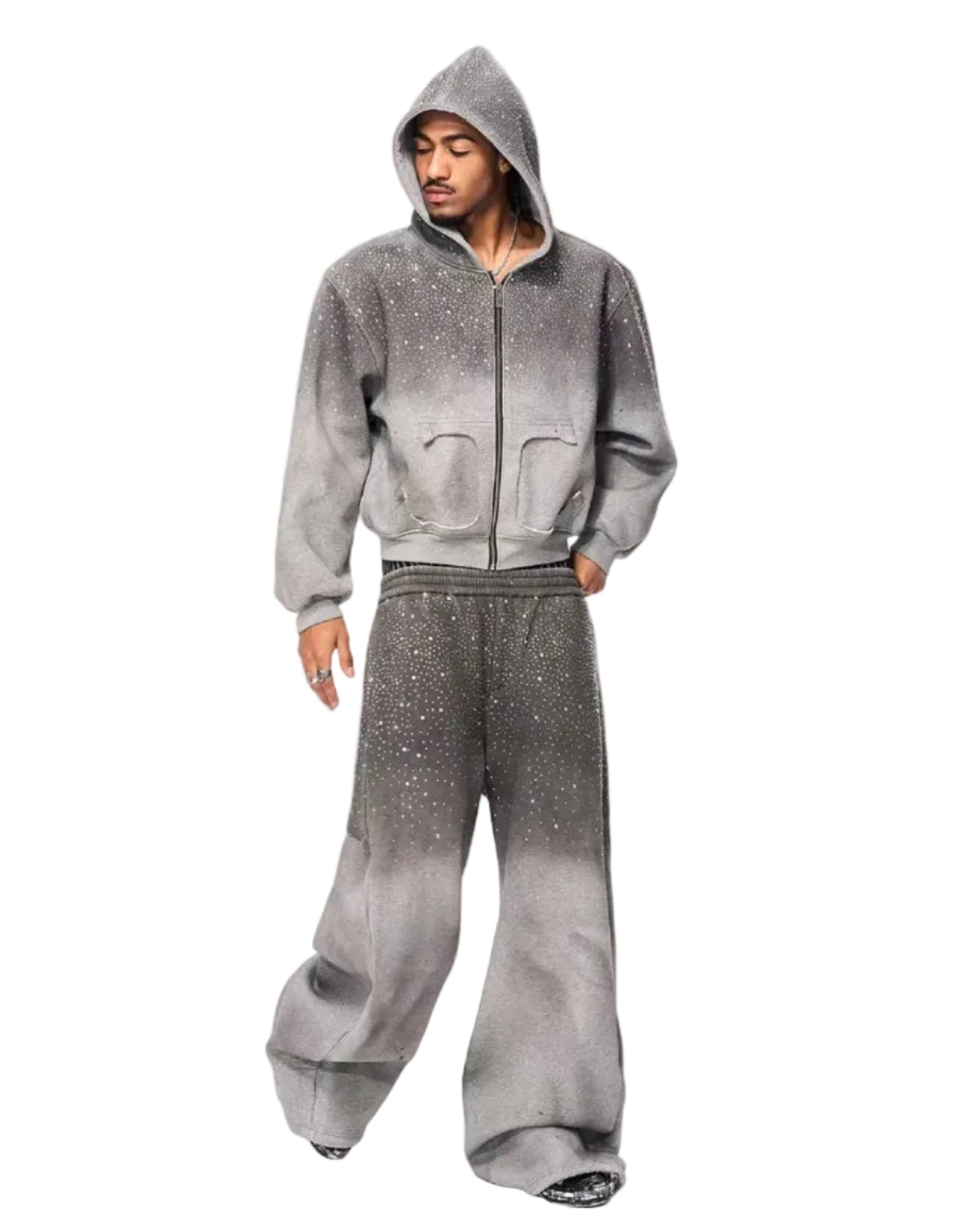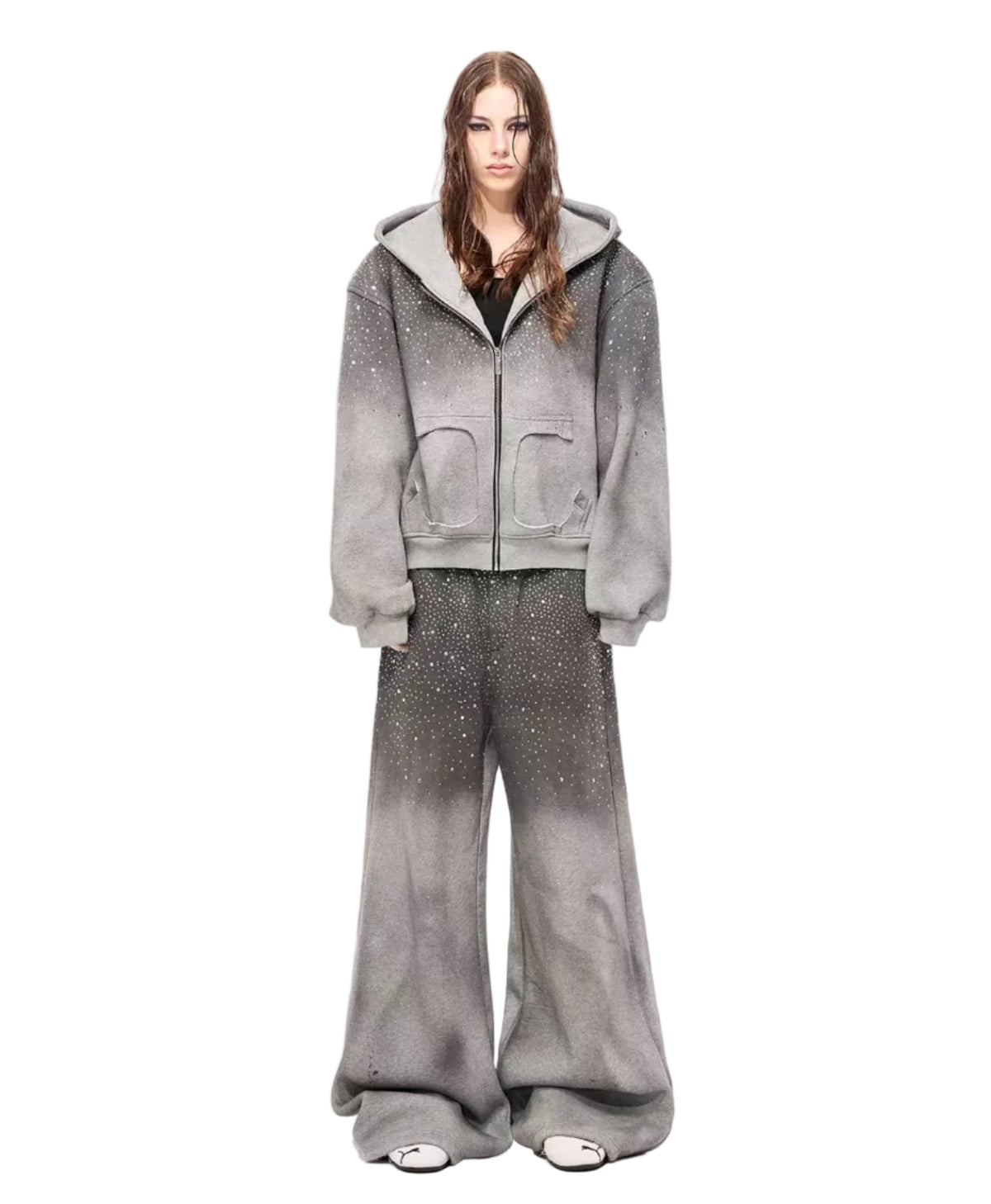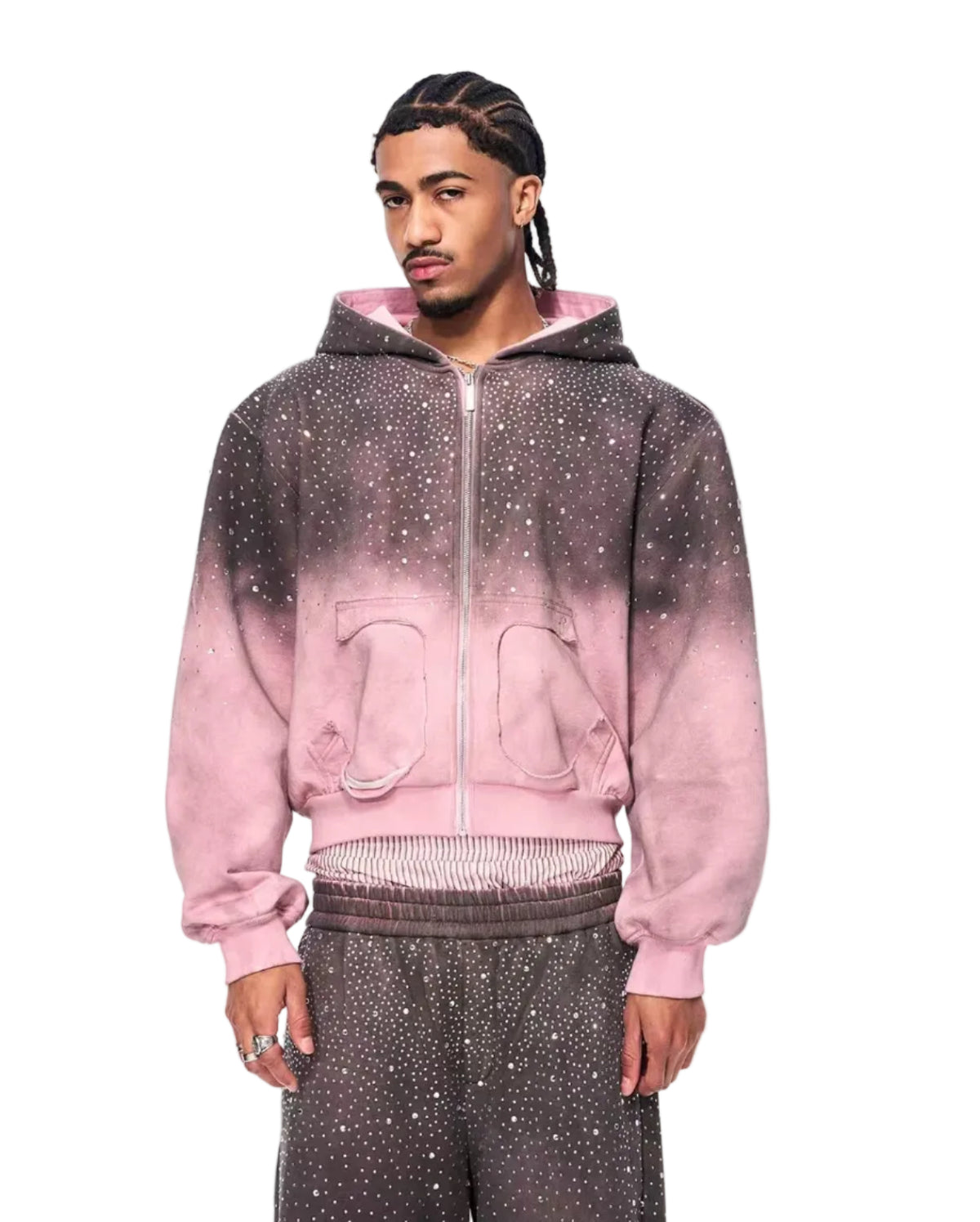 سويت شيرت بقلنسوة بسحاب مزين بالأحجار