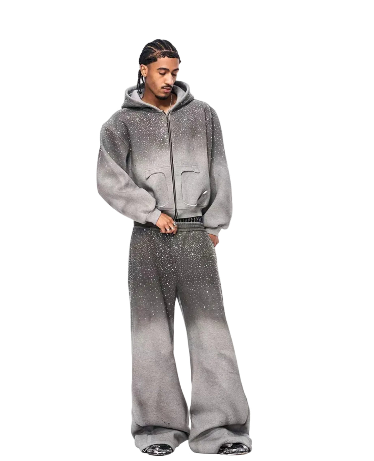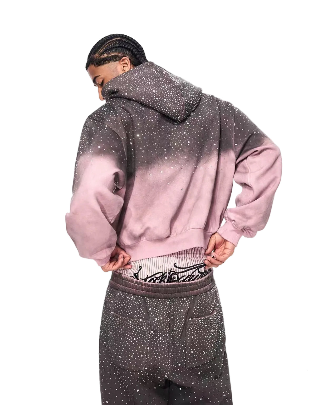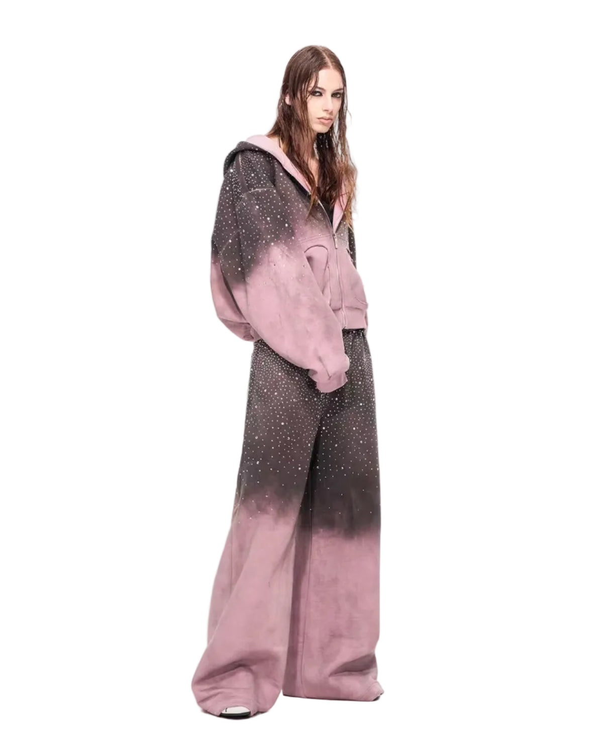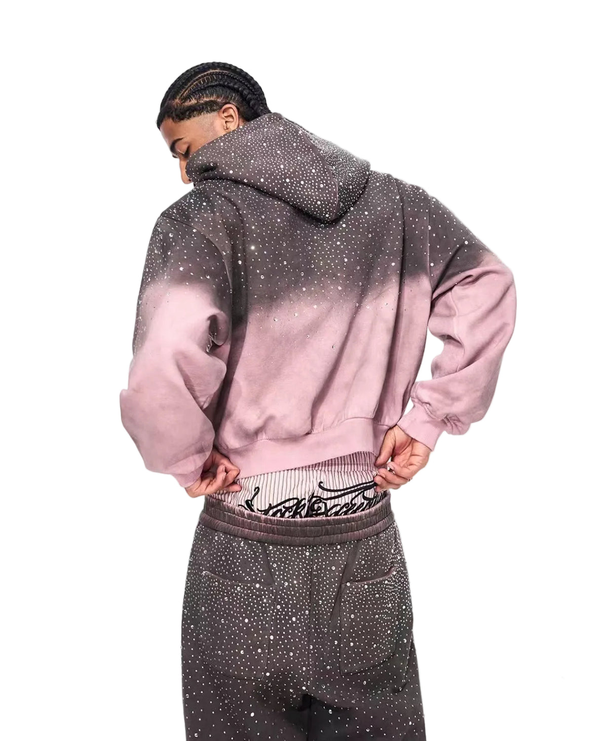 سويت شيرت بقلنسوة بسحاب مزين بالأحجار