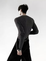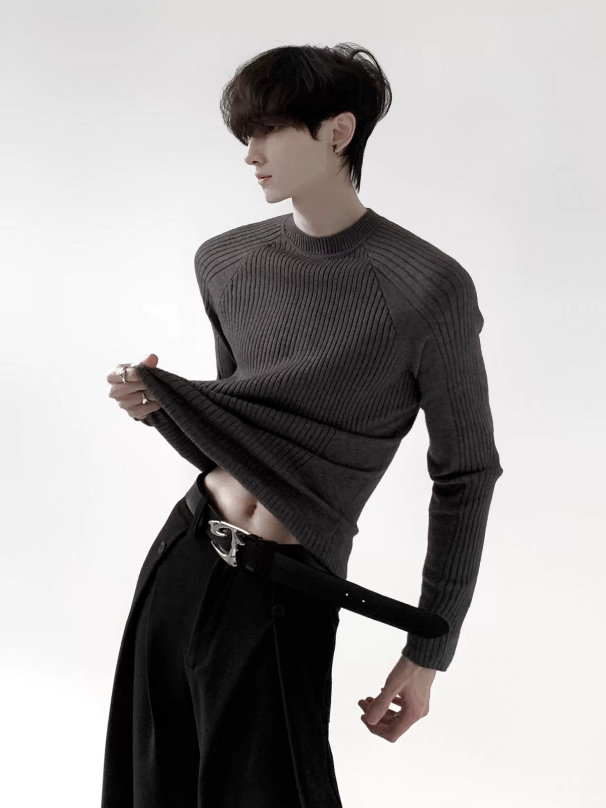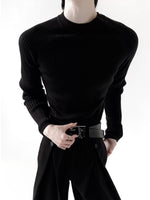 سويت شيرت مضلع بتصميم ضيق مع ياقة دائرية