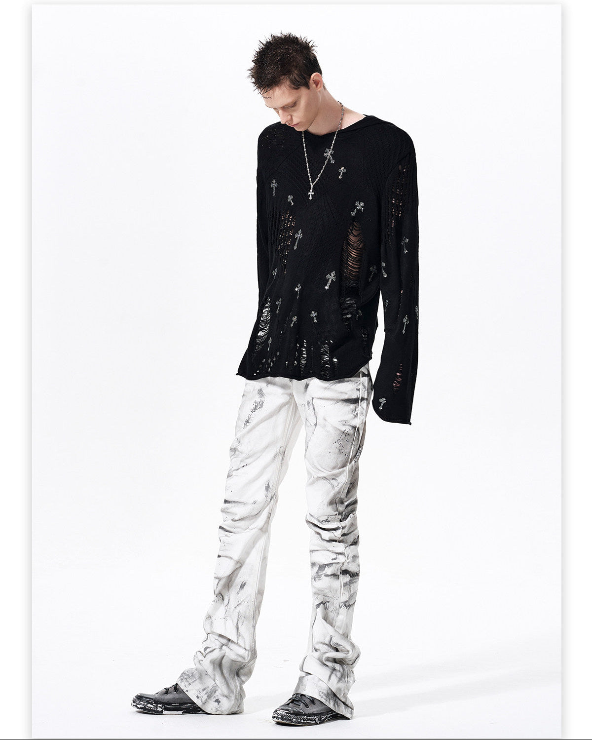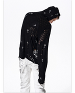 Distressed Knit Hooded Sweater