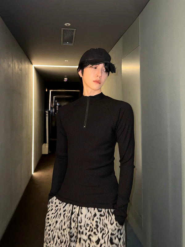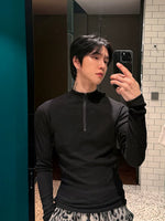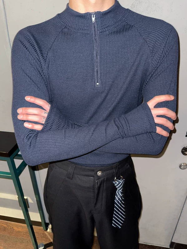 قميص بأكمام طويلة وياقة نصف سحاب مجعد