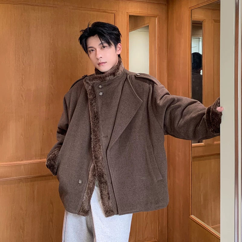 جاكيت صوف مزين بفرو صناعي شتوي