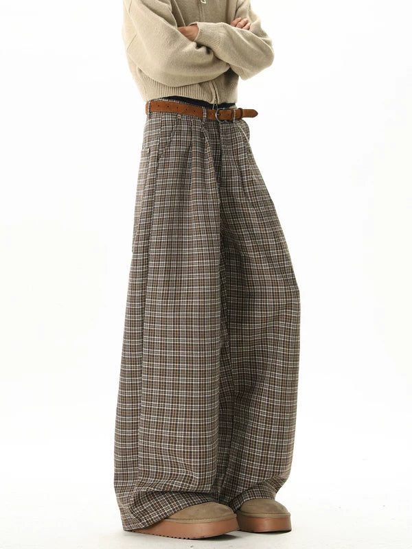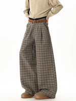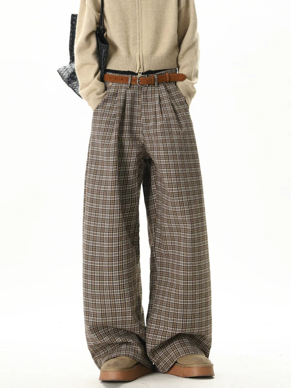 سروال فستان مستقيم واسع بتصميم مربعات