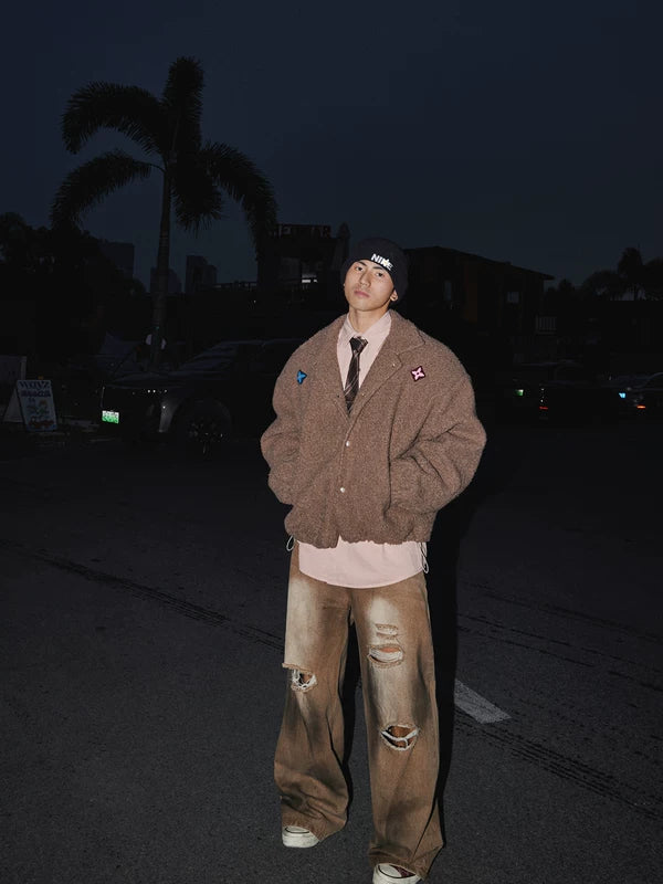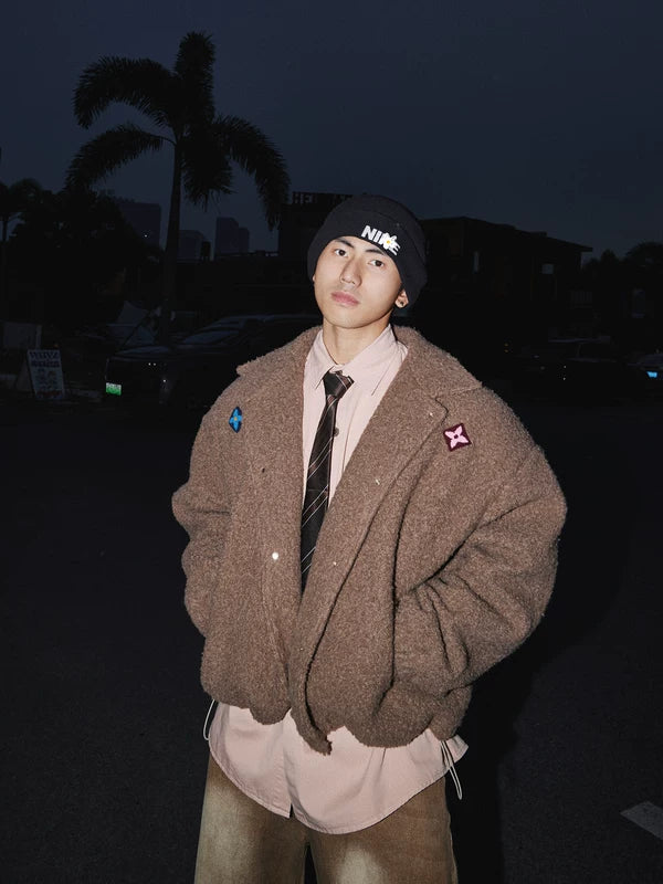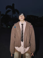 جاكيت صوف فليس مزخرف بالورود الرجعية