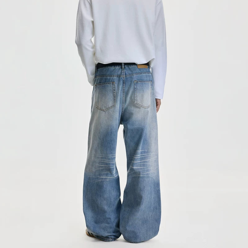 بنطلون جينز واسع الأرجل مع حواف عريضة