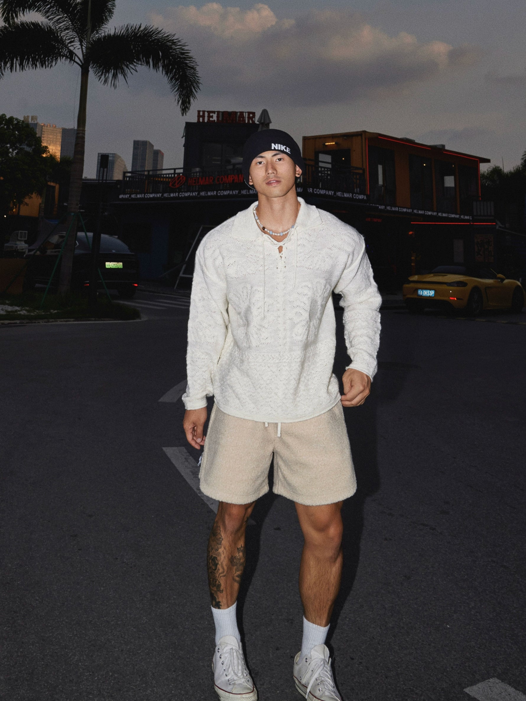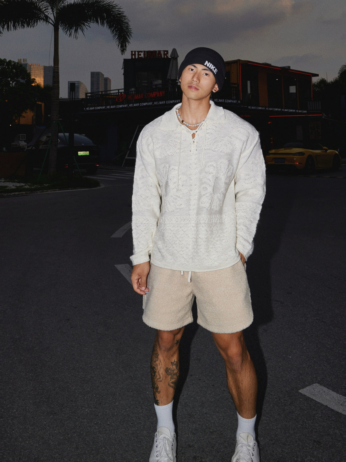 سويت شيرت محبوك على شكل حرف V مزج أكريليك مزخرف بالأزهار
