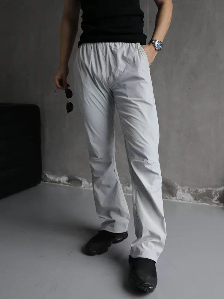 سروال كاجوال مستقيم بخامة شبكية قابلة للتنفس مع حبل سحب