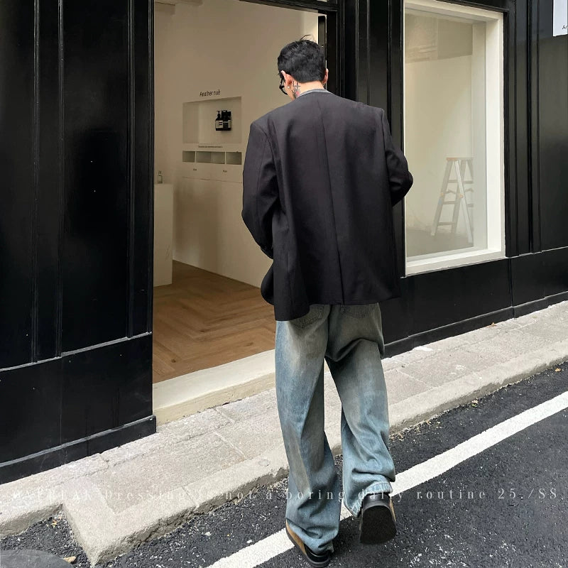 Heavy Wash Retro Loose Straight Jeans Pants