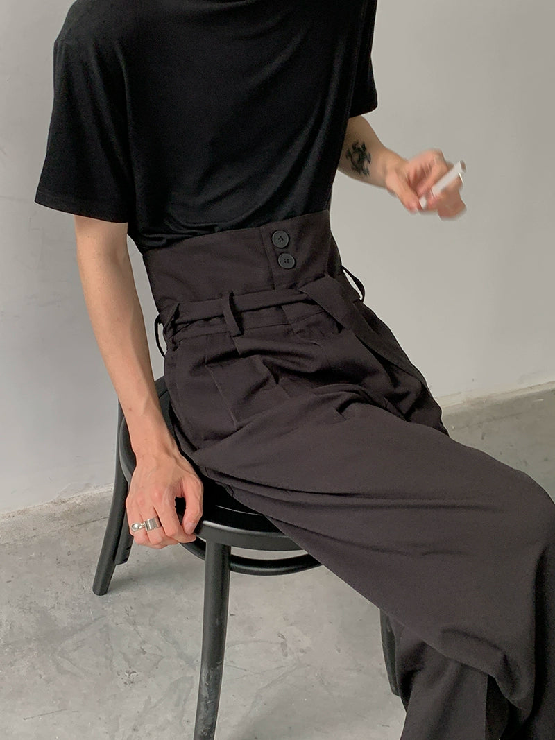 بنطلون كاجوال مستقيم بخصر عالي مع حزام