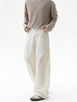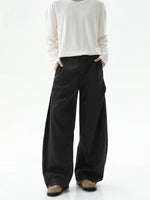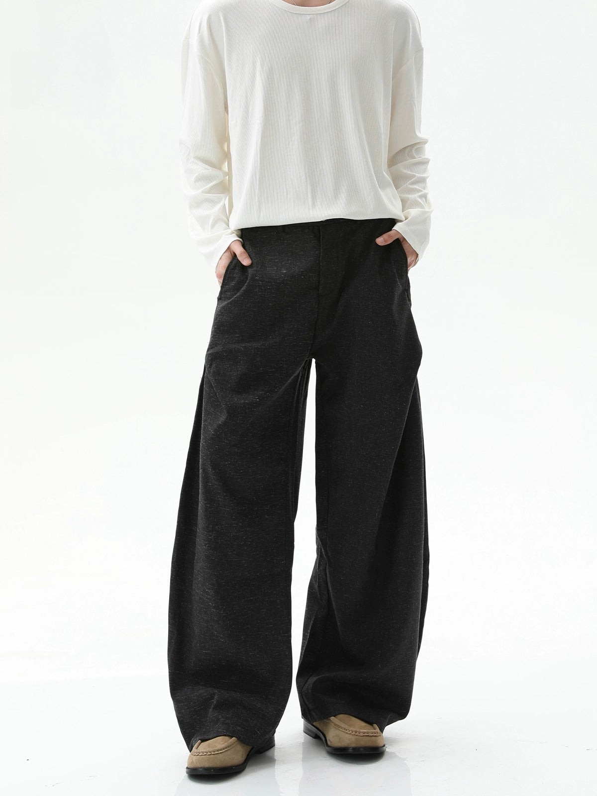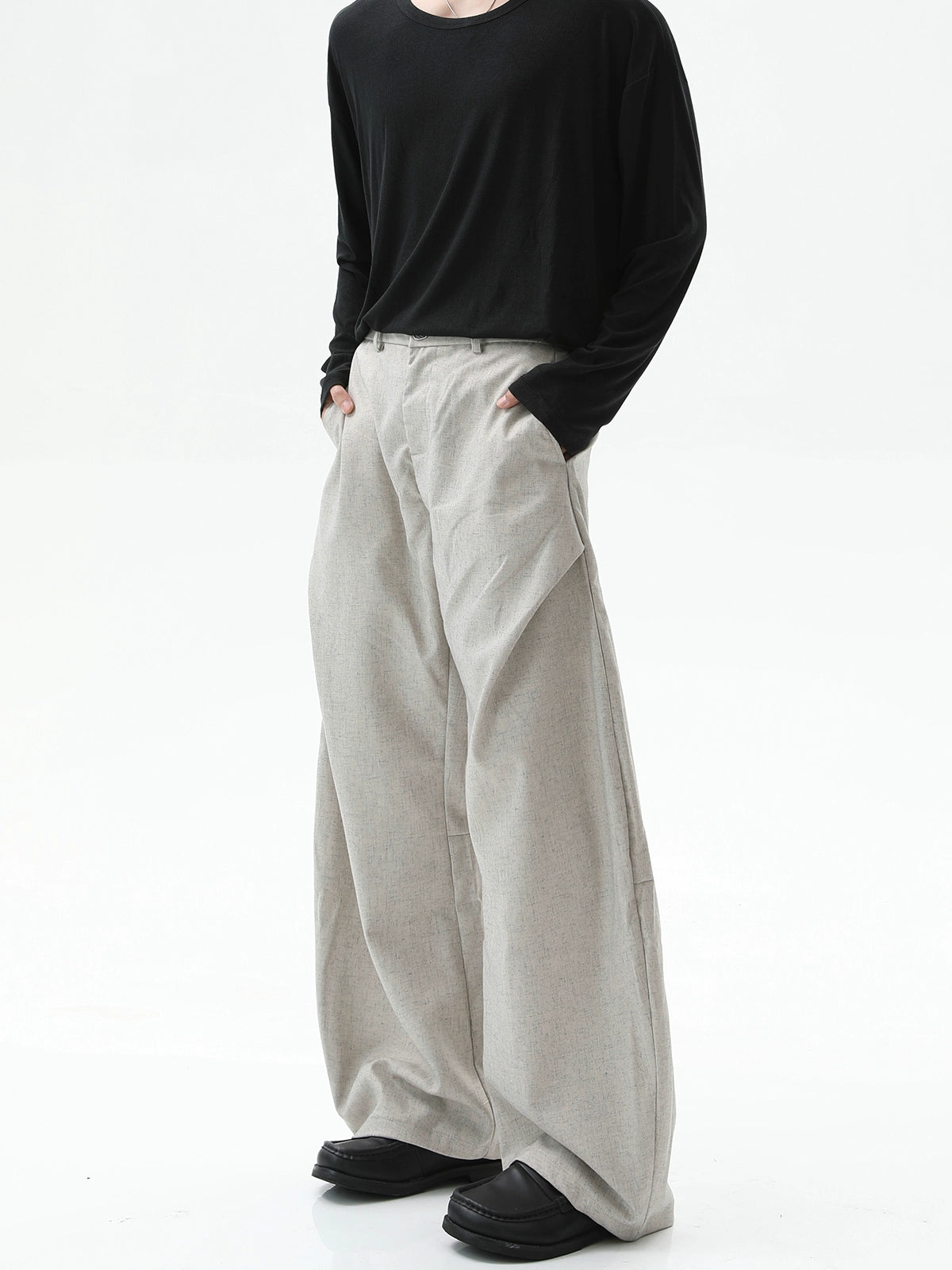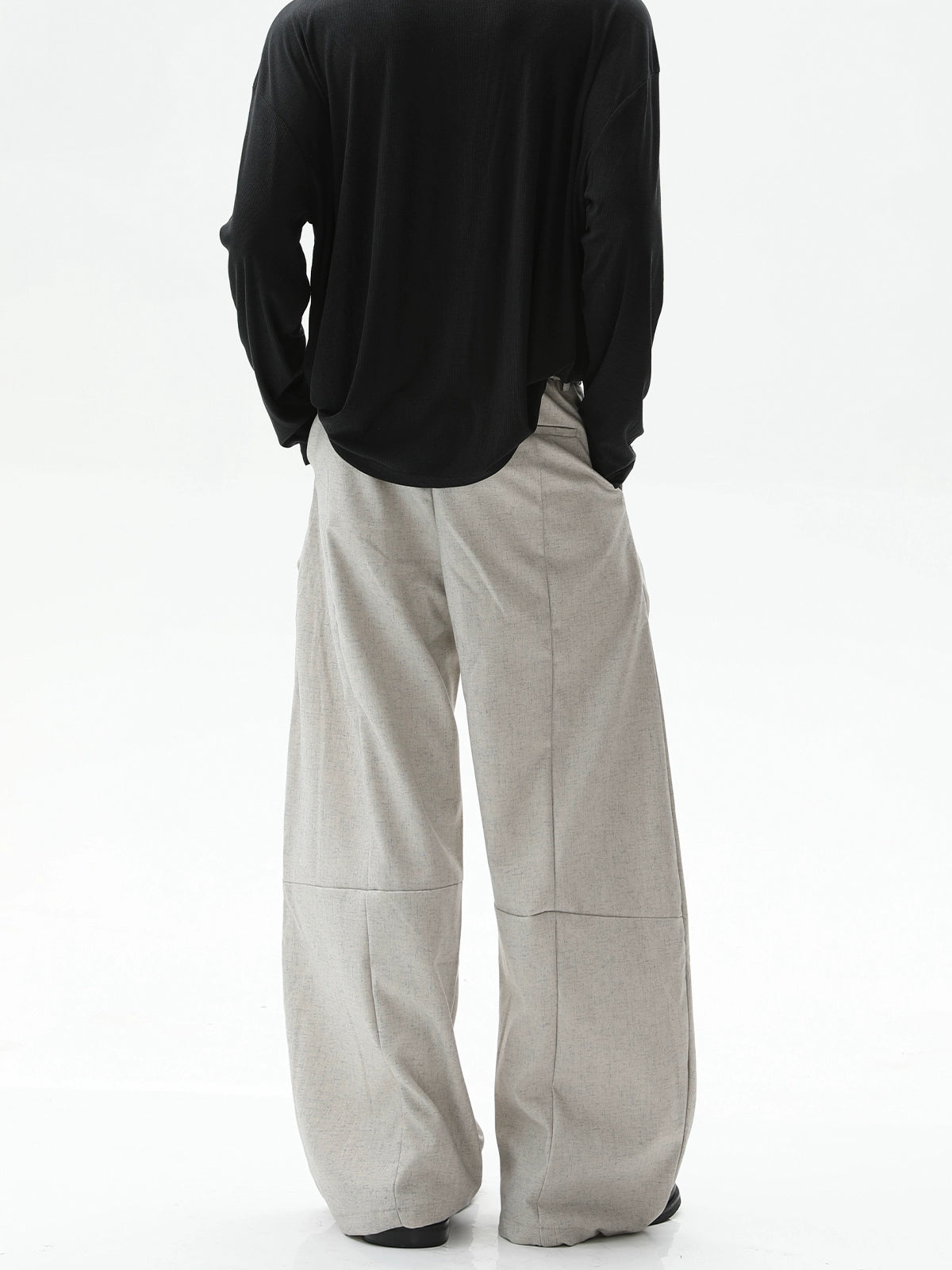 بنطلونات كاجوال واسعة الساقين مطوية من الكتان