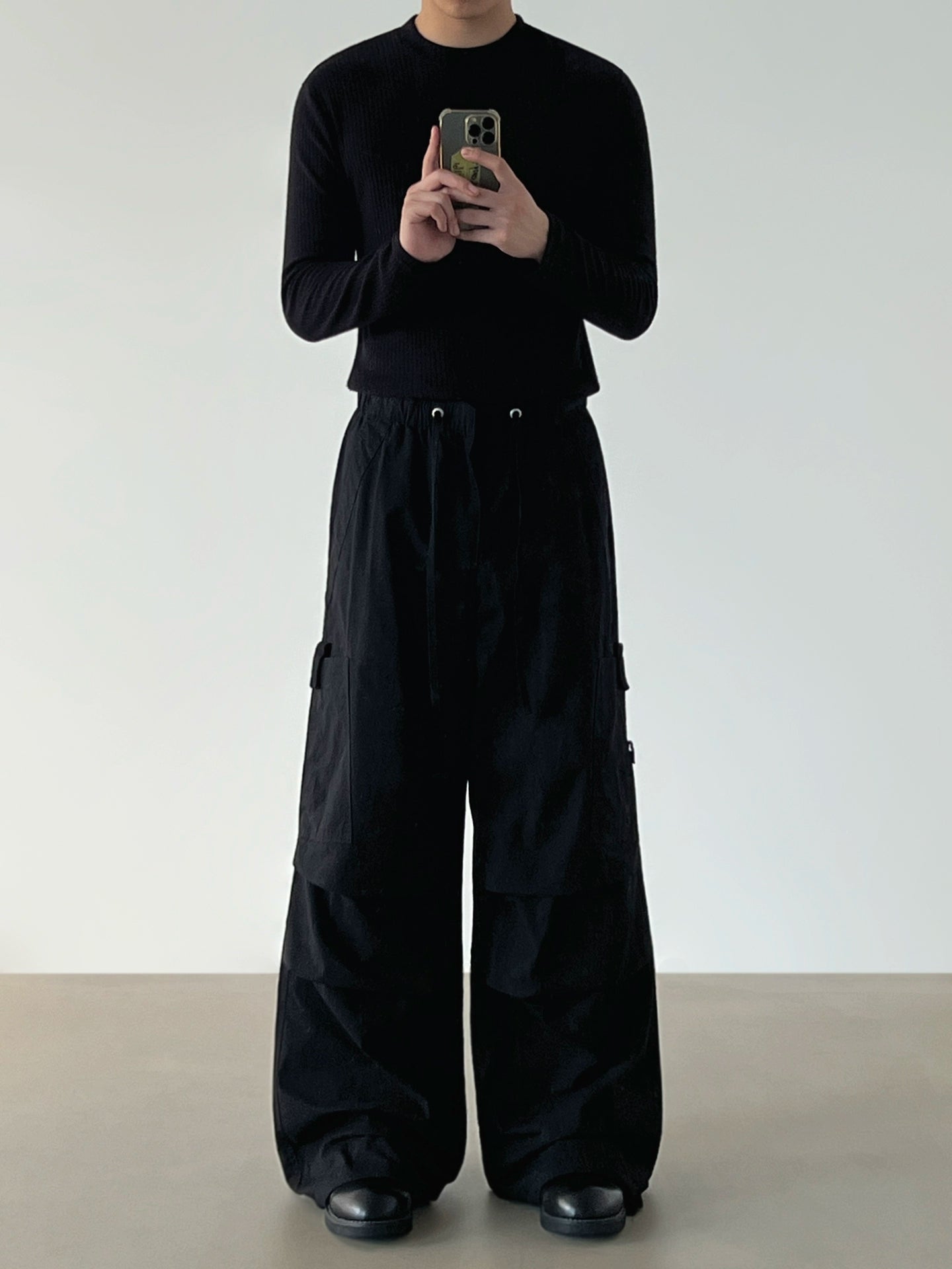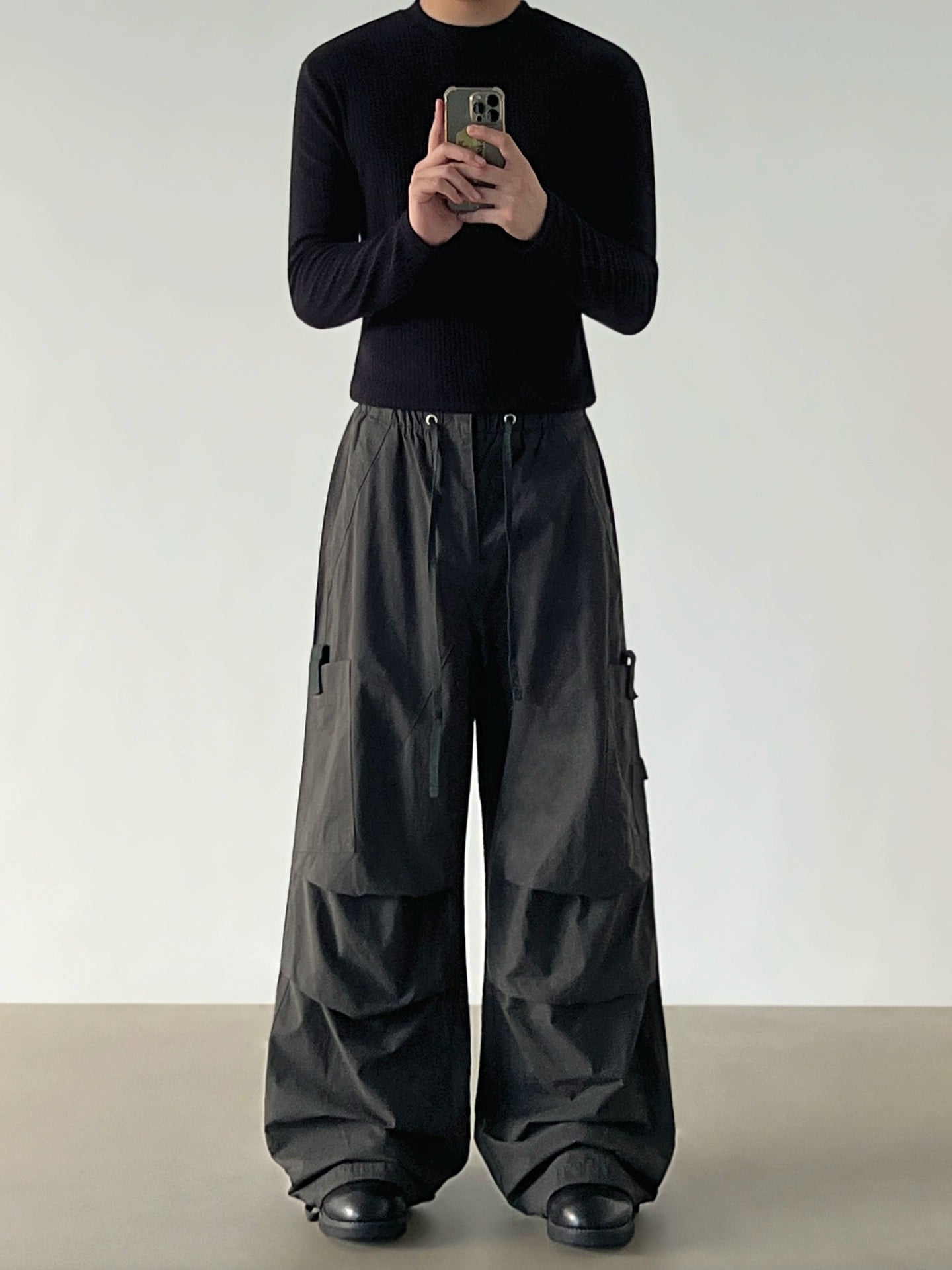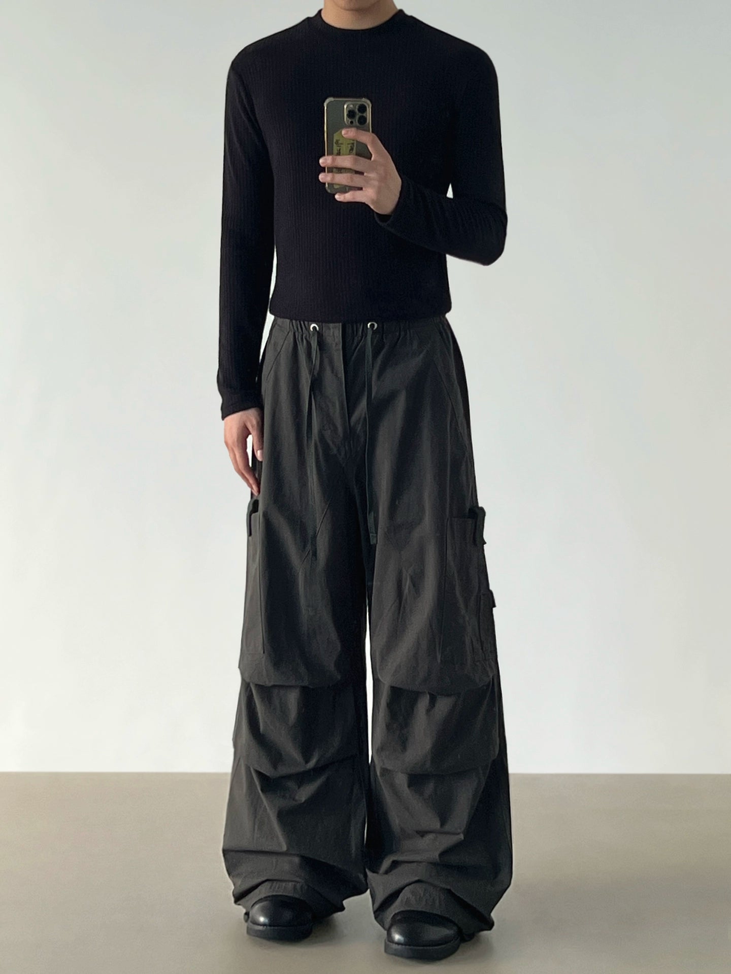 بنطال كارجو واسع الساقين مطوي, بتصميم فضفاض