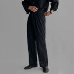 بنطلونات بدلة عادية واسعة الساق مطوية