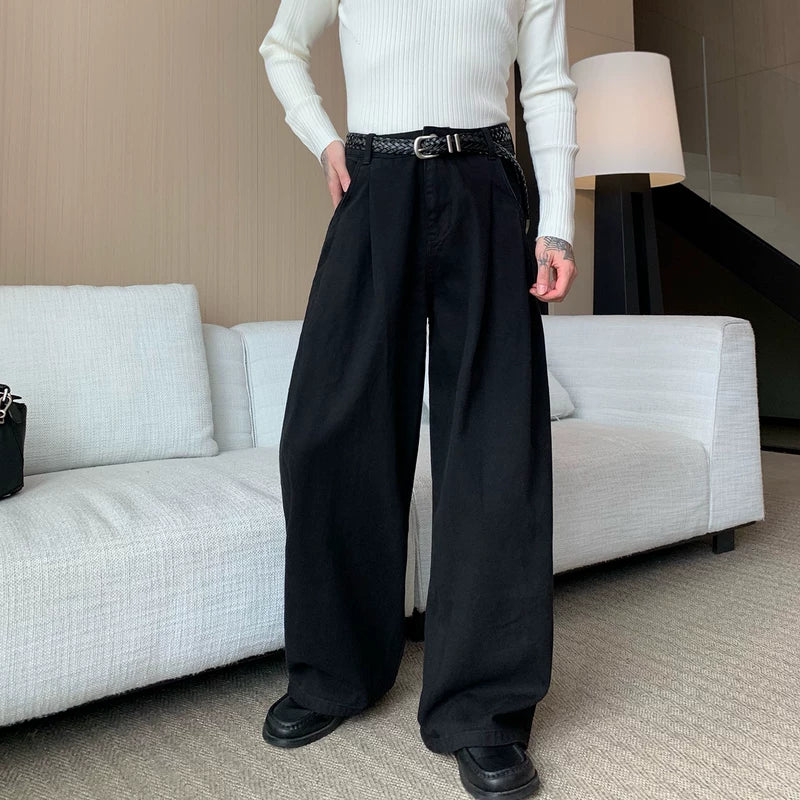 سروال عمل واسع الساقين بخصر مريح مطوي