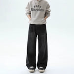 Washed Straight-Leg Wide-Leg Pants