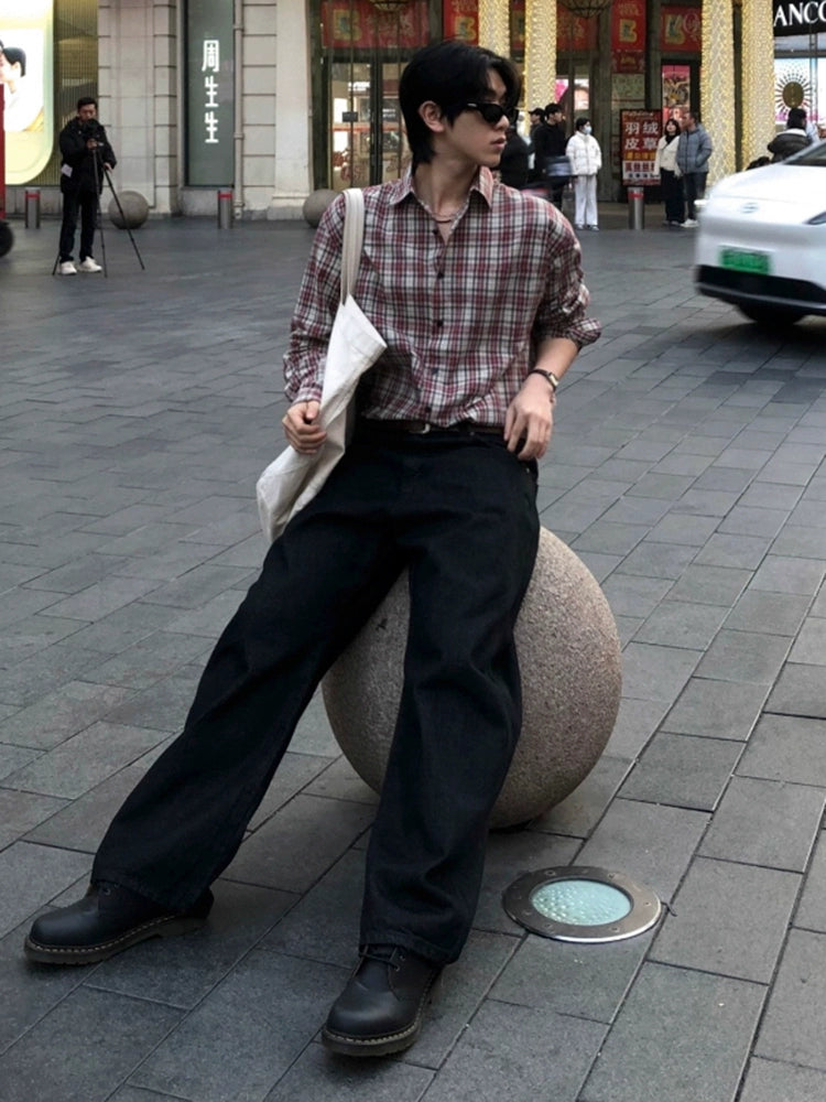 جينز مستقيم واسع الساق بأسلوب ريترو
